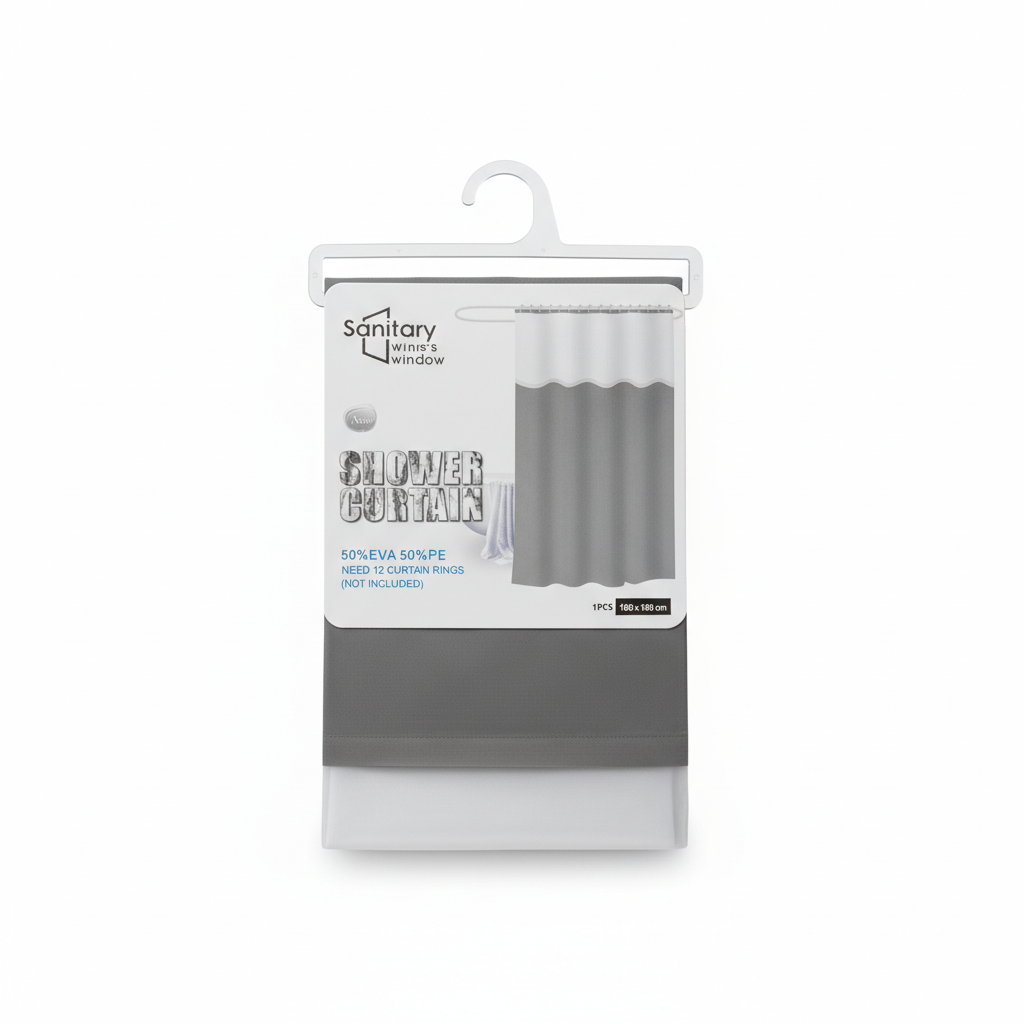 Kjo perde dushi në ngjyrë gri ofron mbrojtje të sigurt nga spërkatjet e ujit dhe i jep banjos suaj një pamje moderne e të rregullt. Materiali i kombinuar 50% EVA dhe 50% PE është rezistent ndaj lagështisë dhe i lehtë për t’u mirëmbajtur, mjafton pastrim me ujë dhe sapun. Dimensionet 180 x 180 cm e bëjnë të përshtatshme si për zonën e dushit ashtu edhe për vaskë. Paketimi përfshin 1 copë perde dushi (kërkohen 12 unaza, nuk janë të përfshira).