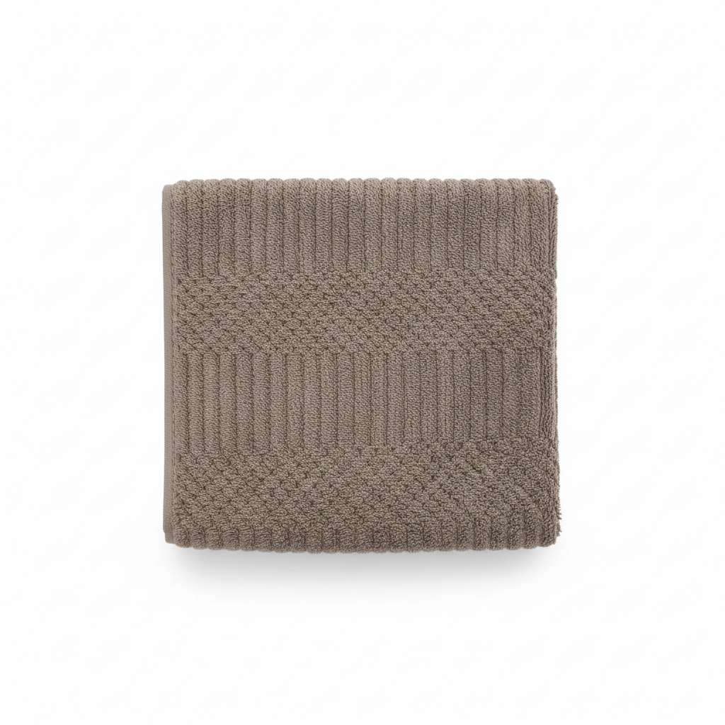 Peshqiri i duarve në ngjyrë neutrale taupe sjell një pamje moderne dhe të ngrohtë në çdo banjë, duke u kombinuar lehtësisht me çdo stil dekorimi. Pëlhura e butë terry është e këndshme në prekje dhe absorbon shpejt lagështinë, ideale për përdorim të përditshëm nga e gjithë familja.