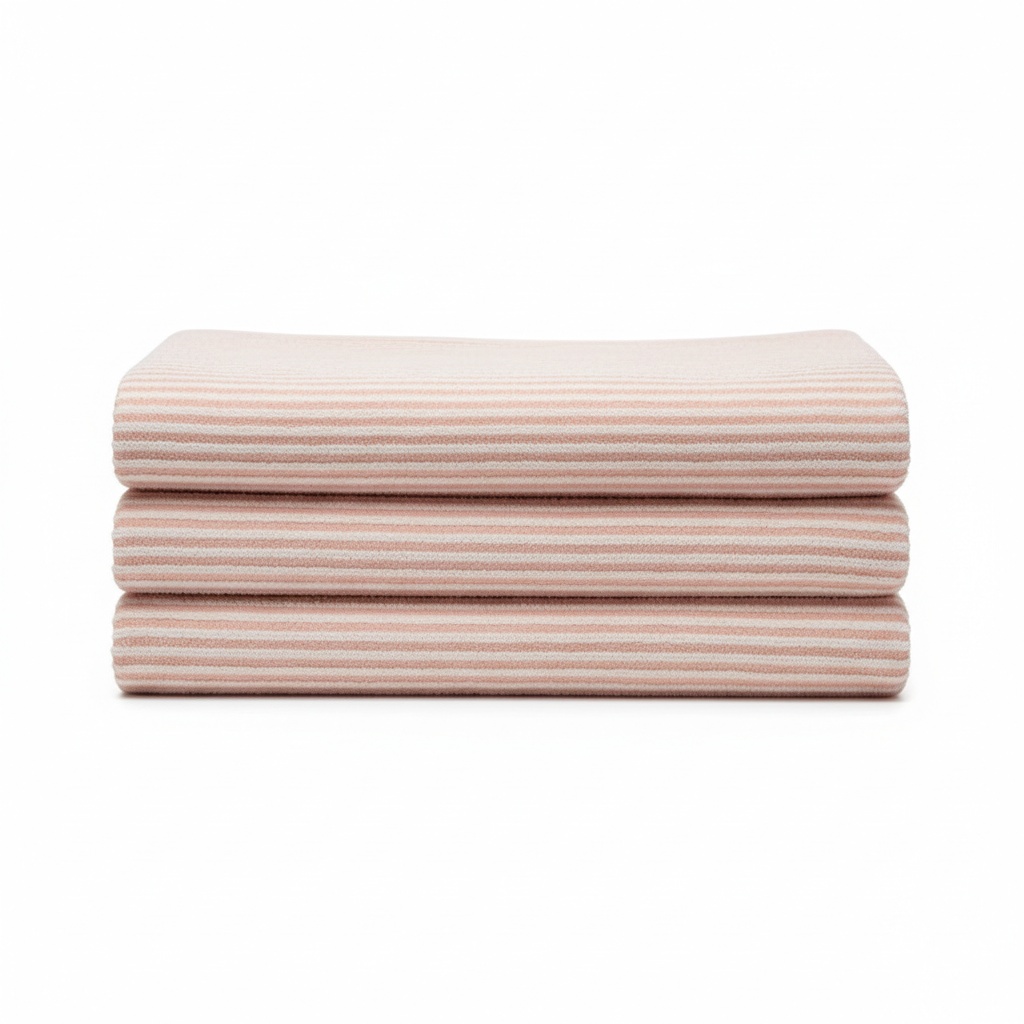 Ky peshqir banje me përmasa 70×140 cm ofron mbulim të plotë dhe tharje të shpejtë pas dushit. Pëlhura prej frotëje shumë të butë është e këndshme në prekje dhe krijon ndjesi rehatie në çdo përdorim. Ngjyra rozë me vija horizontale sjell një pamje të freskët dhe elegante për hapësirën tuaj të banjës. Sipërfaqja e tij me teksturë të brinjëzuar rrit thithjen e ujit dhe i jep një dizajn modern.