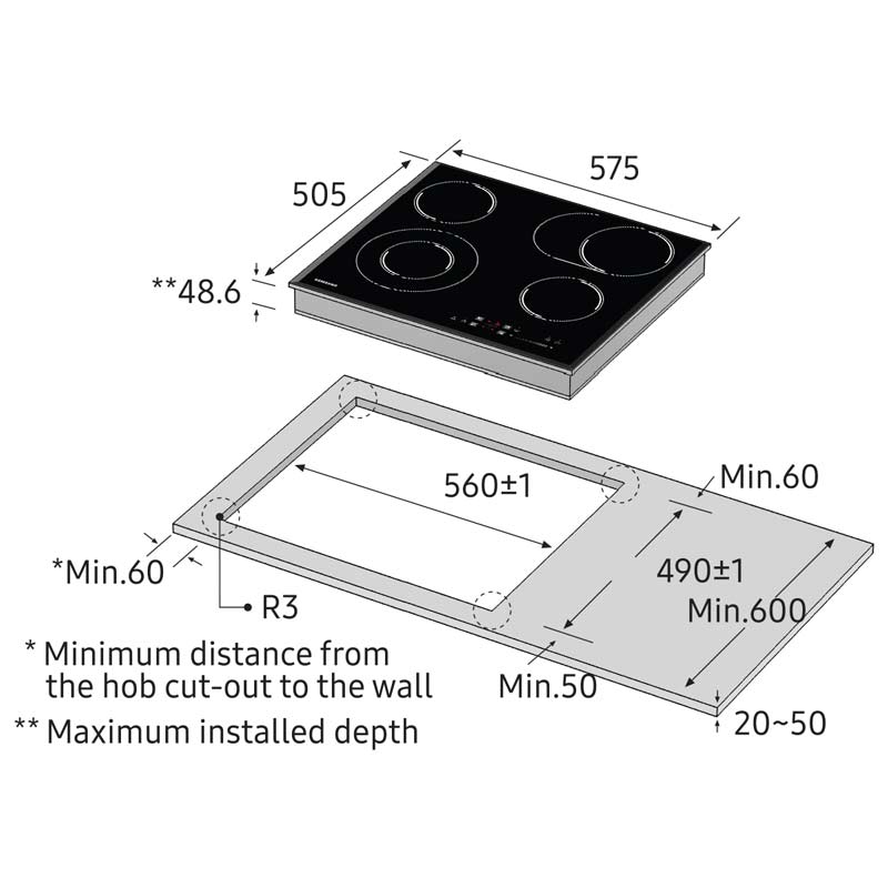 | Prerja për instalim | 560 × 490 mm |