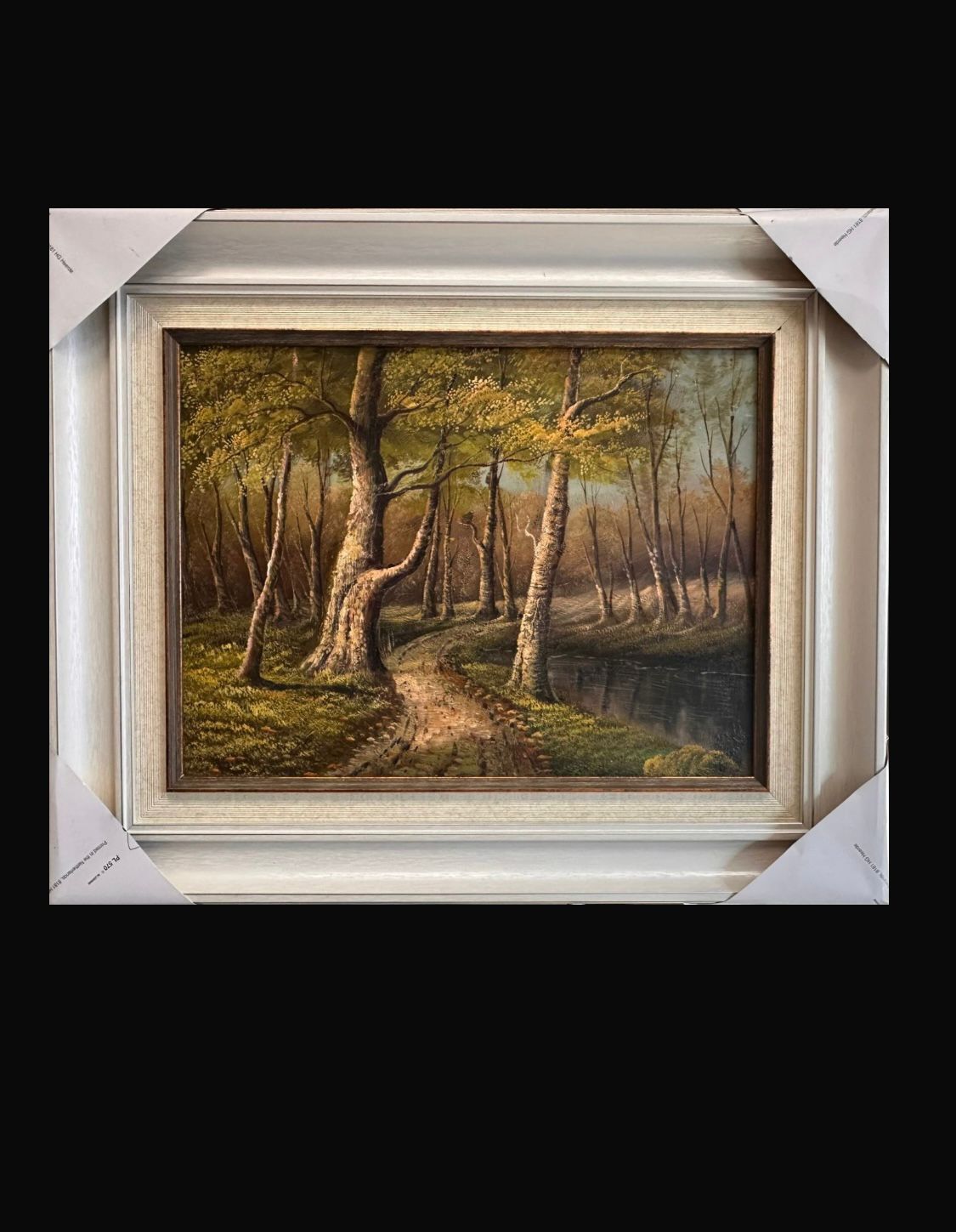 Kjo pikturë dekorative paraqet një peizazh pyjor të qetë, ku një shteg i ngushtë kalon mes pemëve të larta dhe shtrihet përgjatë një lumi të qetë. Kompozimi krijon ndjesinë e thellësisë dhe e bën veprën vizualisht të balancuar dhe relaksuese.