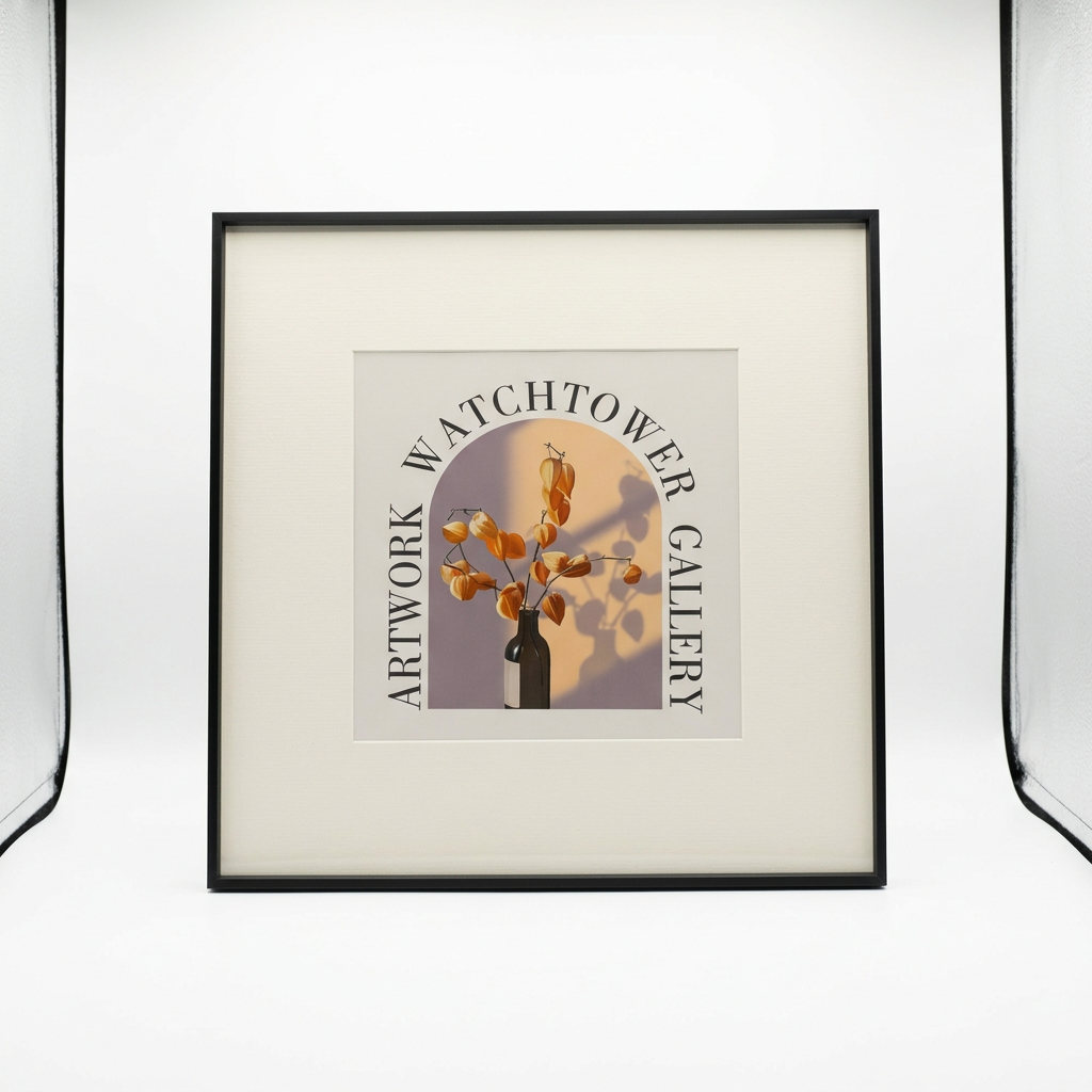 Kjo pikturë katrore me mbishkrimin “WATCHTOWER GALLERY ARTWORK” dhe imazhin e një shisheje me degë të thata portokalli sjell një atmosferë moderne dhe të ngrohtë në çdo hapësirë. Korniza e zezë e hollë dhe paspartuja off‑white krijojnë kontrast të rafinuar, duke e bërë artin të bjerë në sy si pikë fokale në mur. Ideale për dhomë ndenjeje, korridor, dhomë gjumi apo ambient pune, kjo vepër arti shkon lehtësisht me stile të ndryshme arredimi.