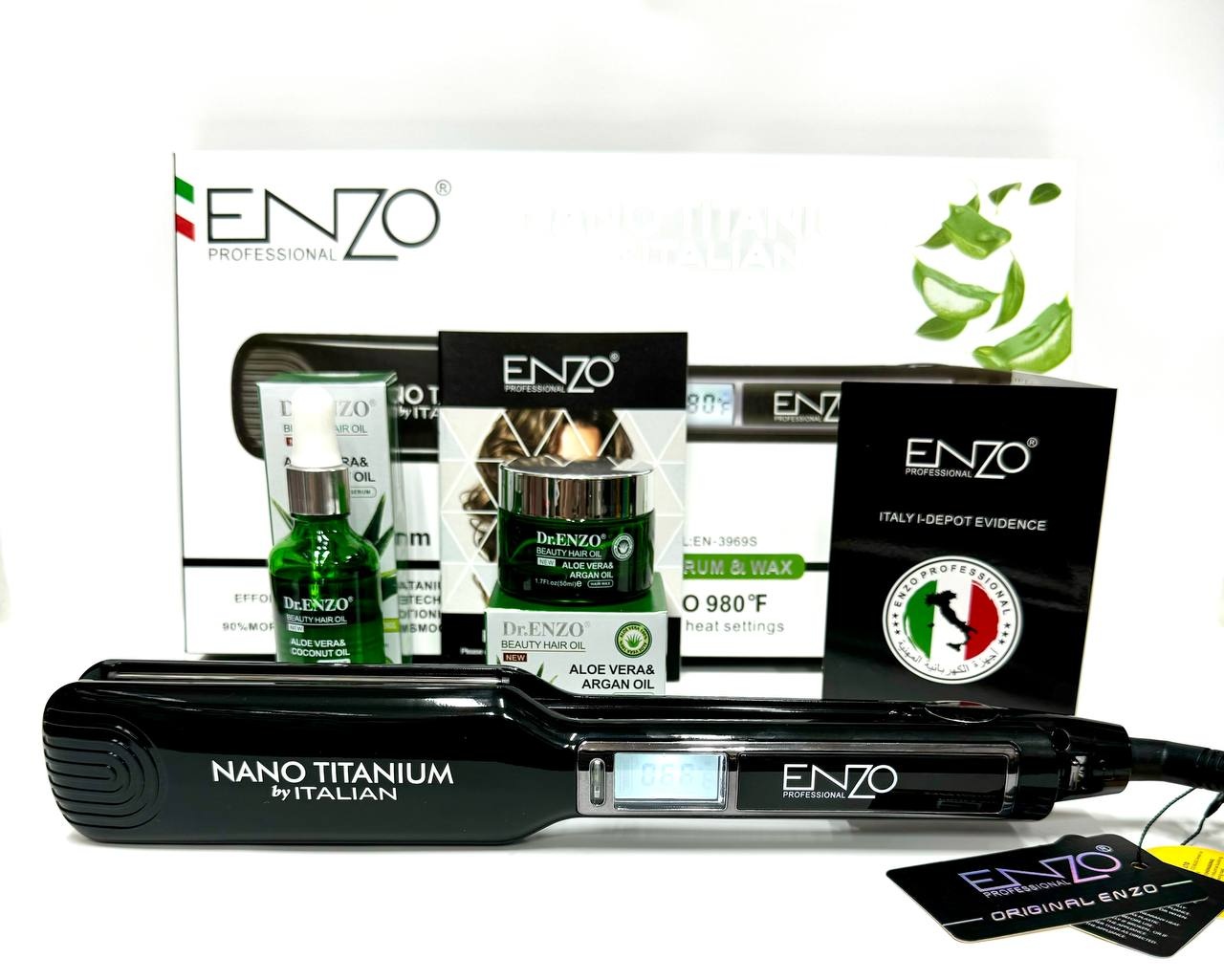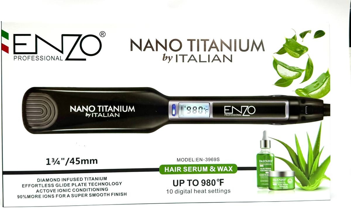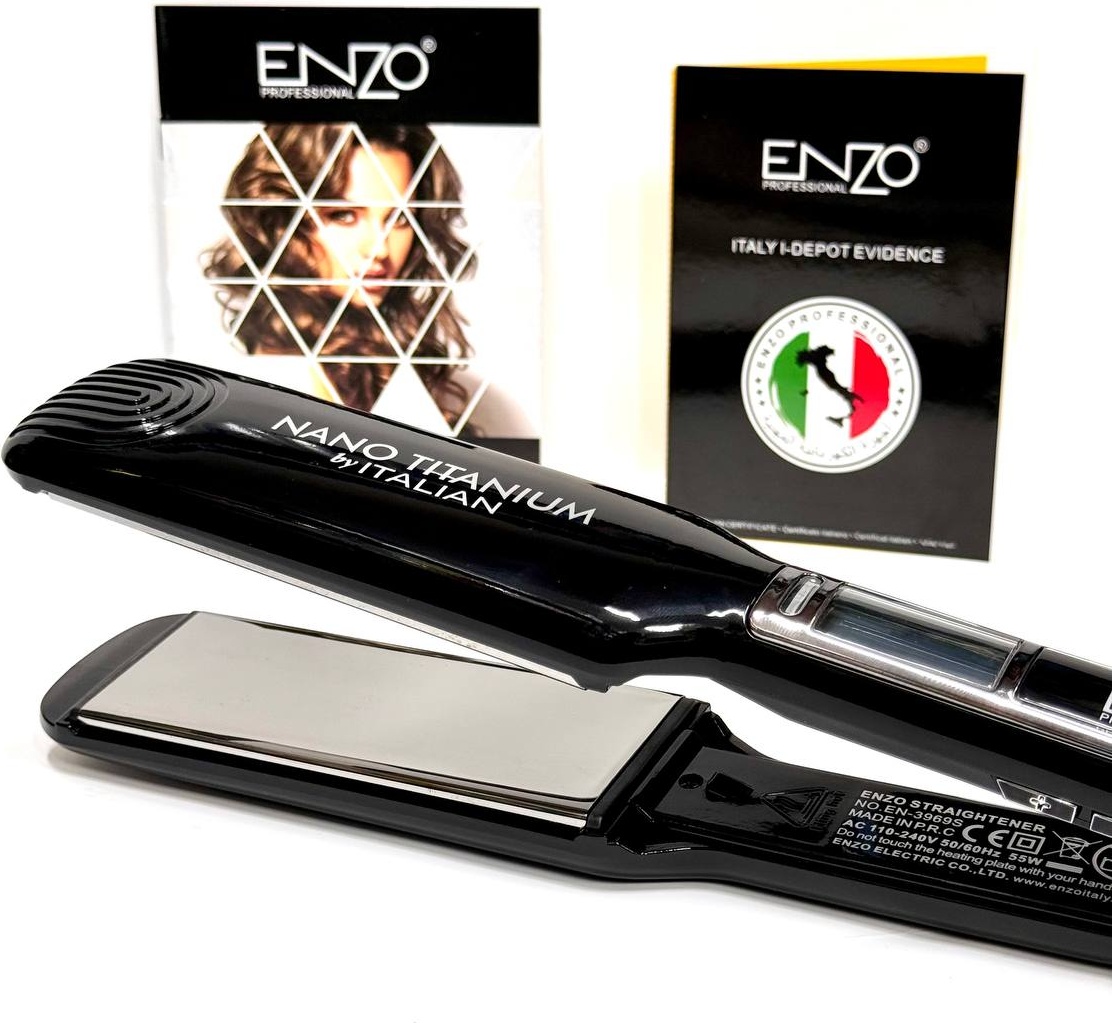 ENZO Professional EN-3969S është një pjastër shumëfunksionale për flokë, e projektuar për drejtim dhe krijim kaçurrelash me rezultate profesionale. Me diametër 45 mm, fuqi 55 W dhe veshje titani, kjo pajisje siguron shpërndarje të njëtrajtshme të nxehtësisë dhe mbrojtje të flokëve gjatë stilimit. E pajisur me ekran digjital, funksion jonizimi dhe 15 nivele temperature, pjatra ofron kontroll të saktë dhe përdorim të sigurt për çdo lloj floku.