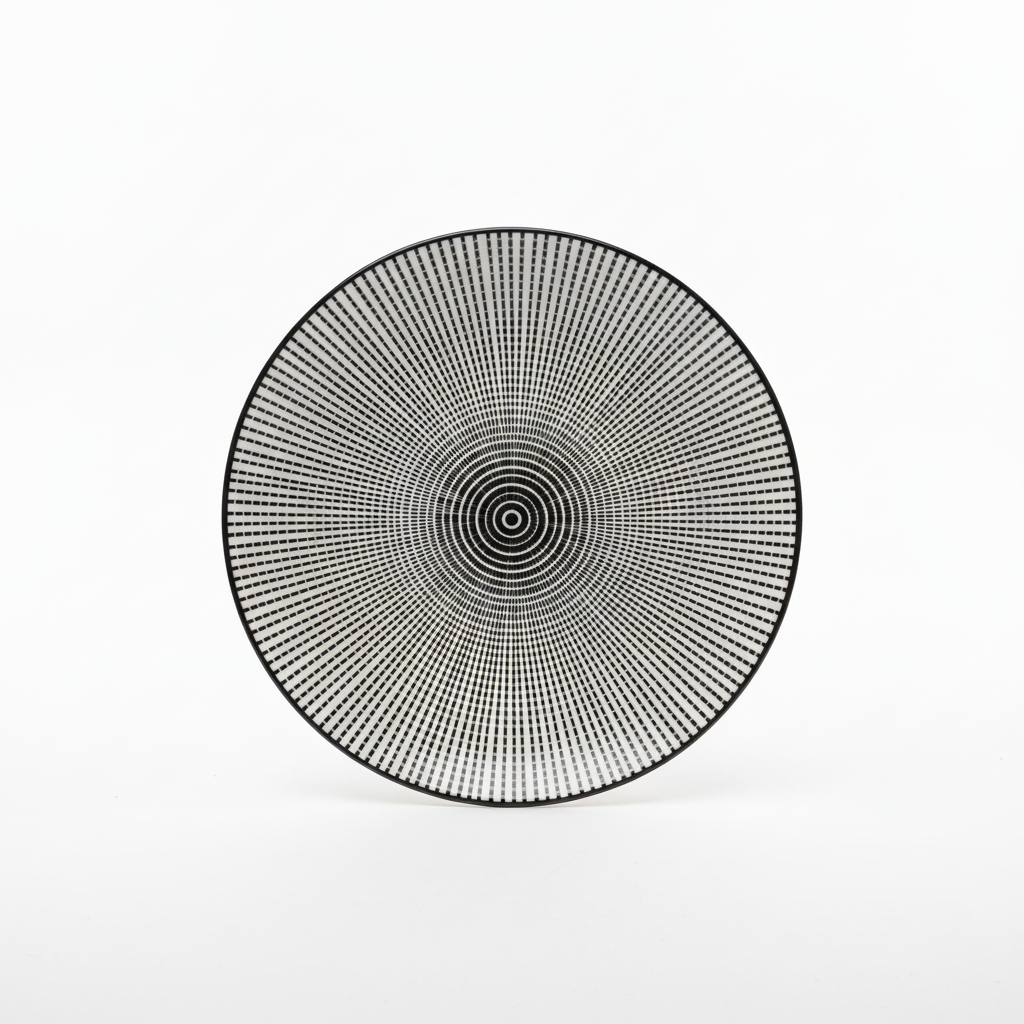 Pjatë e sheshtë 7.5" prej porcelani të imët me model bardh e zi gjeometrik që i jep stil modern çdo tryeze. Praktike për përdorim të përditshëm dhe të lehtë për t’u kombinuar me enë të tjera.