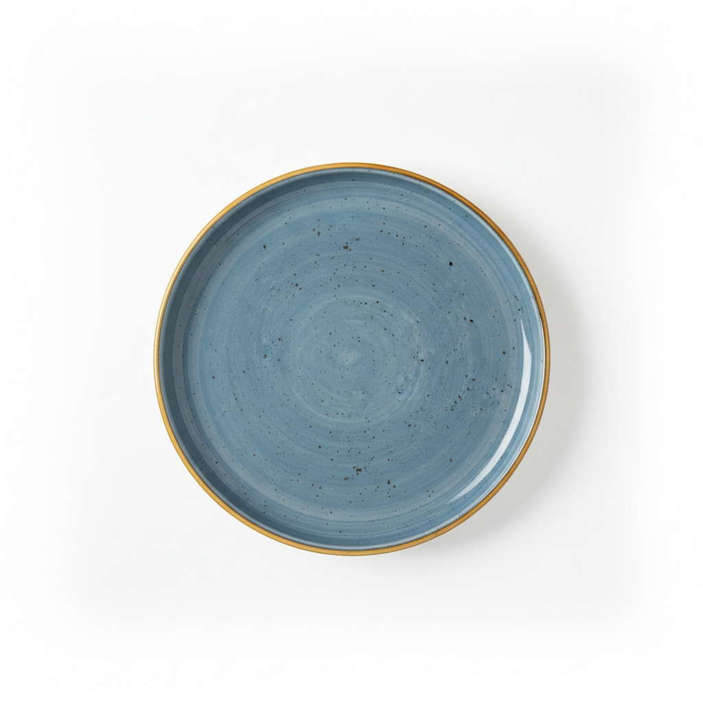 - Pjatë qeramike e rrumbullakët me sipërfaqe blu të glazuar