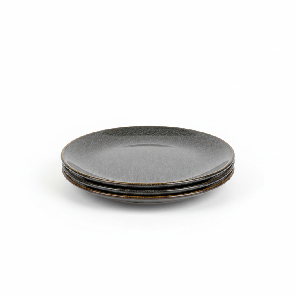 Pjatë rrethore porcelani me diametër 23 cm, në ngjyrë të errët elegante dhe sipërfaqe me shkëlqim. Dizajni minimalist e bën të përshtatshme për servirim të përditshëm ose për darka të veçanta.