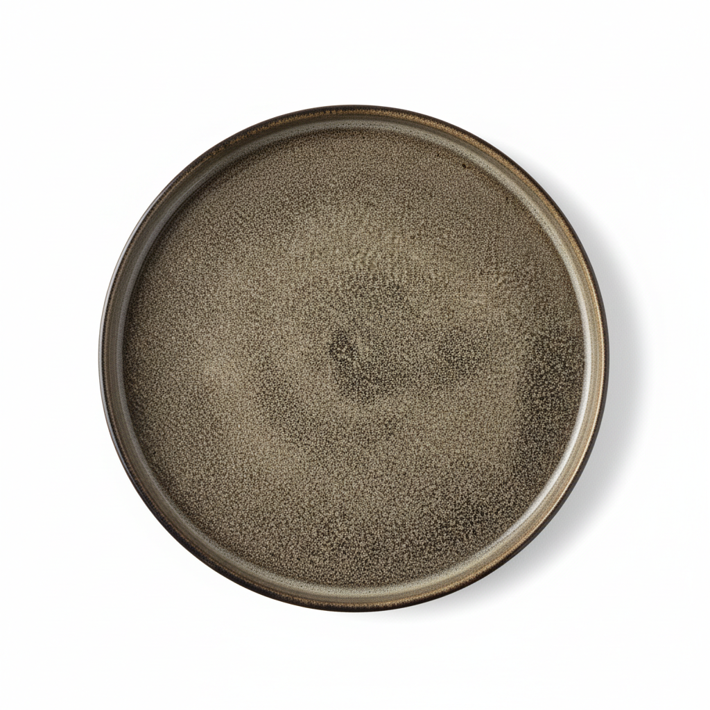 Pjatë Darke Porcelani 18cm, Rrethore me Buzë të Ngritur – Glasur Pikash Kafe/Gri