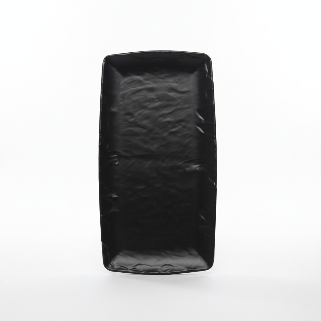 Pjata dekorative drejtkëndore në ngjyrë të zezë sjell një pamje moderne dhe elegante për ambientin tuaj. Dizajni i cekët e bën të përshtatshme për shtruar dekorime të ndryshme në tavolinë ose në çdo sipërfaqe.