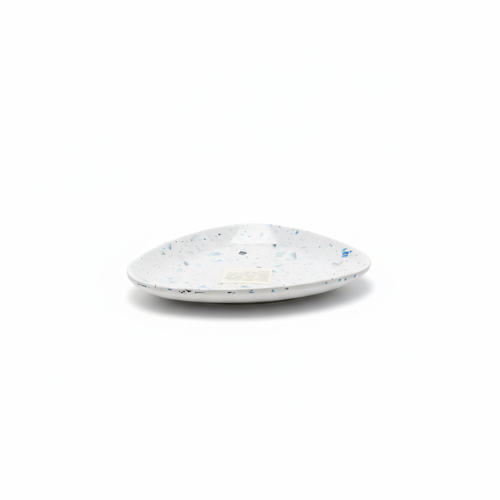 Pjatë dekorative moderne në ngjyrë të bardhë me efekt terrazzo, ideale për ta vendosur mbi komodinë, tavolinë apo raft si aksesor elegant dekorimi. Forma organike dhe dizajni i cekët e bëjnë një theks minimalist që tërheq vëmendjen në çdo ambient.
