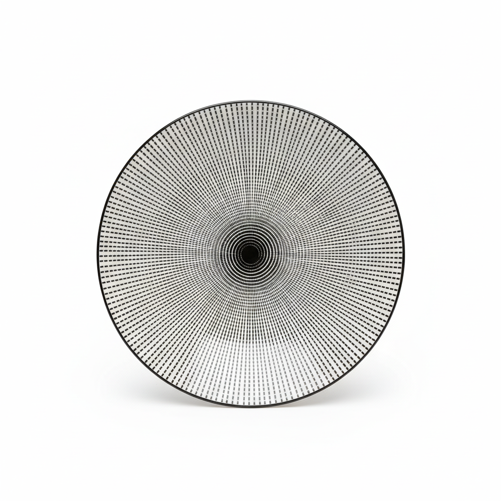 Pjatë e Thellë Porcelani 23.2 cm, Bardhë-Zezë me Vija Pikash Koncentrike