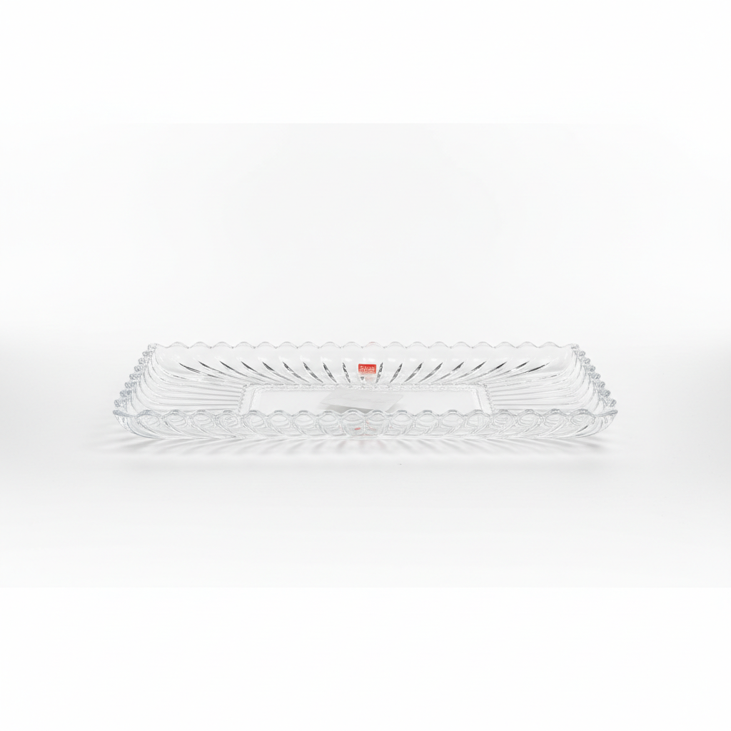 Pjata e sheshtë prej kristali është ideale për servirjen elegante të frutave apo ëmbëlsirave në çdo tryezë. Dizajni transparent me detaje dekorative e bën të duket moderne dhe tërheqëse.