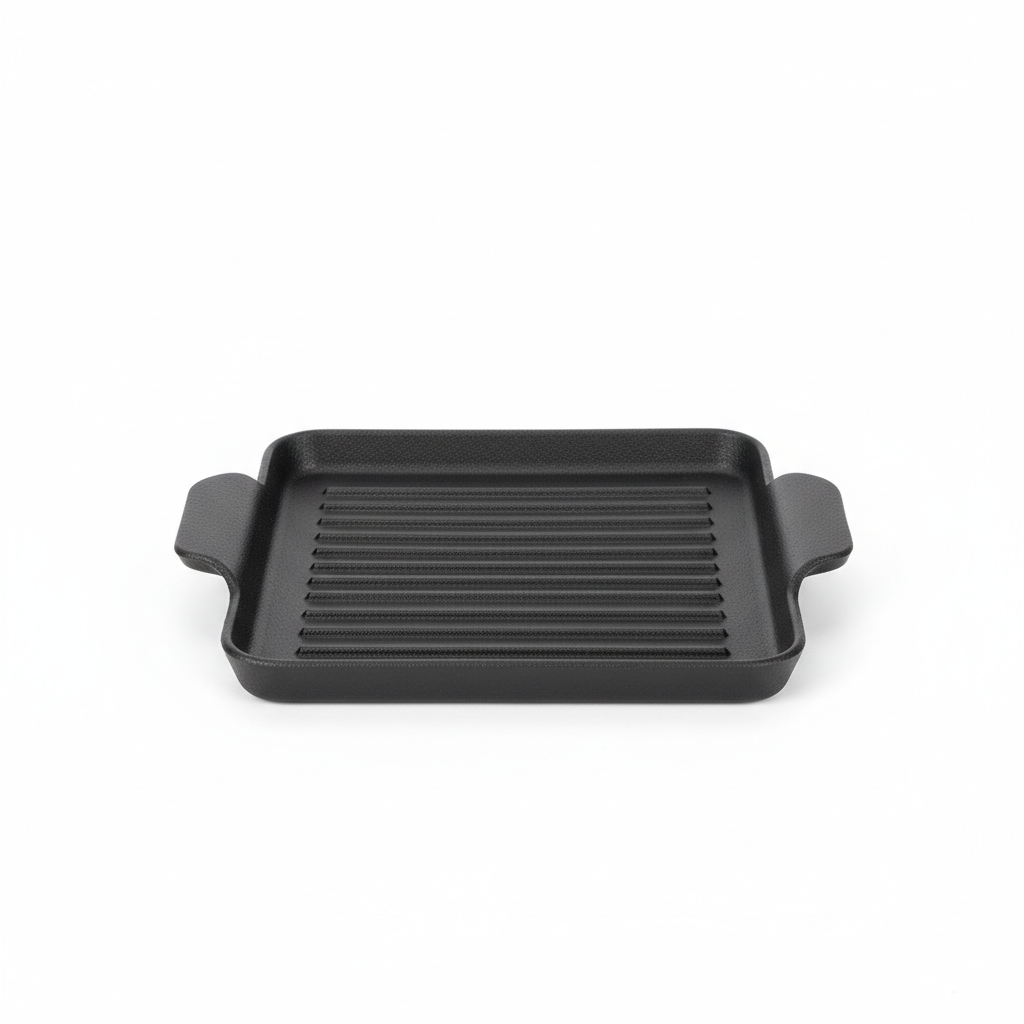 Kjo pllakë gize me vija të ngritura siguron pjekje intensive dhe shenja të bukura grili për mish, perime dhe sanduiçe. Dorezat anësore e bëjnë ngritjen dhe transportin të sigurt, ndërsa baza prej druri shërben për prezantim elegant dhe mbrojtje të sipërfaqes. Dizajni drejtkëndor ofron sipërfaqe praktike gatimi dhe lehtësi në servirje për disa racione njëherësh.