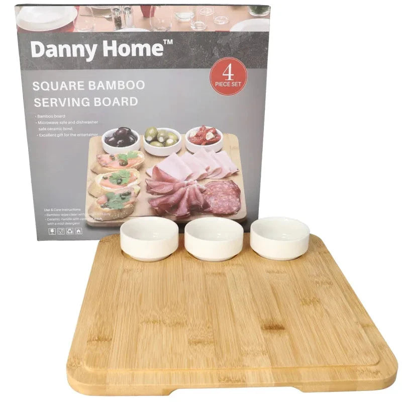 Kjo pjate elegante është e përsosur për të servirur fruta e perime të freskëta, peshk, mish, chips & salsa. Tasat mund të përdoren si tasë për zhytje, ideal për darka me miq ose piknik.