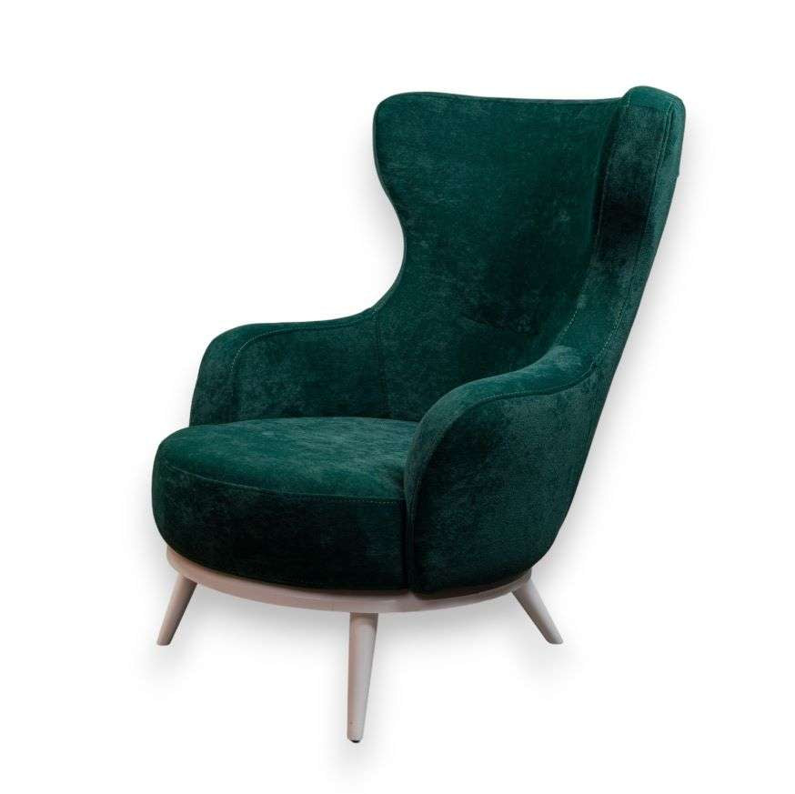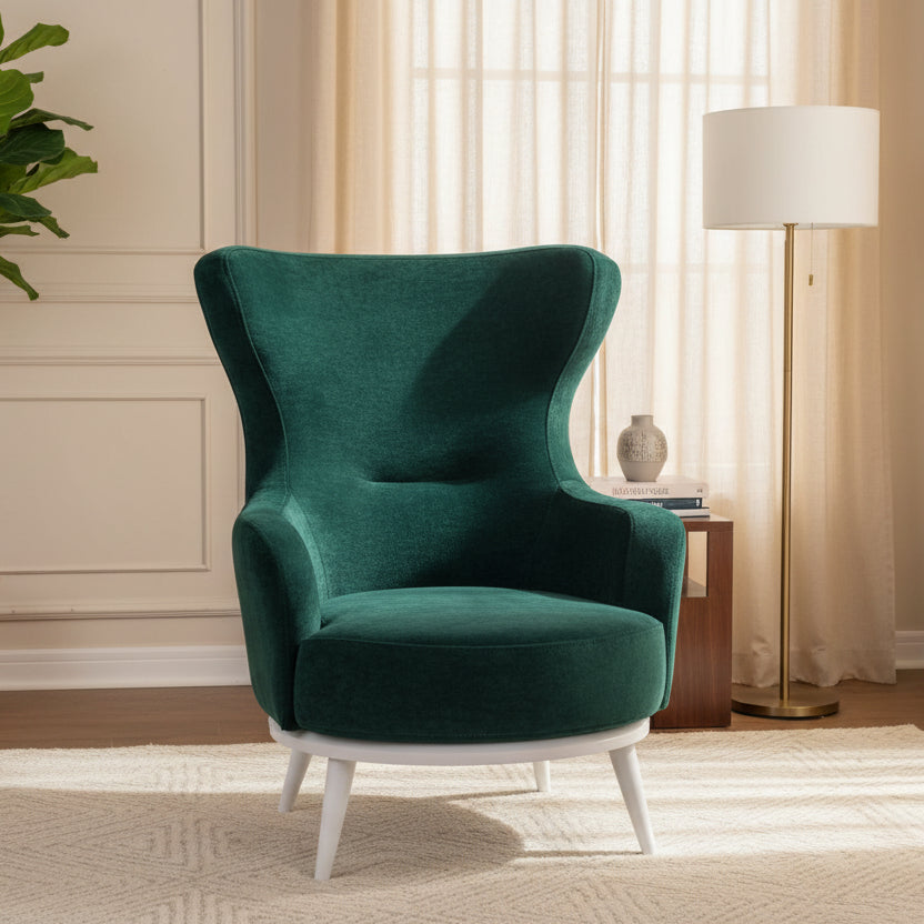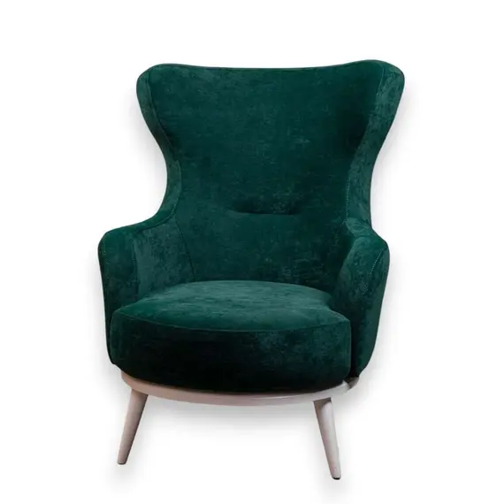 E veshur me kadife luksoze në një nuancë të thellë jeshile, ajo ofron një ndjesi qetësie dhe pasurie vizuale. Dizajni i saj me mbështetëse të lartë dhe krahë të harkuar përqafon trupin, duke ofruar rehati maksimale për orët tuaja të relaksit.