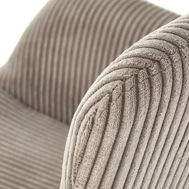 E veshur me pëlhurë kadifeje me vija në ngjyrë bezhë , Belmiro ofron një sipërfaqe jashtëzakonisht të butë dhe mikpritëse. Ngjyra e saj neutrale sjell ngrohtësi dhe kombinohet lehtësisht me çdo dekor, nga ai modern tek ai skandinav.