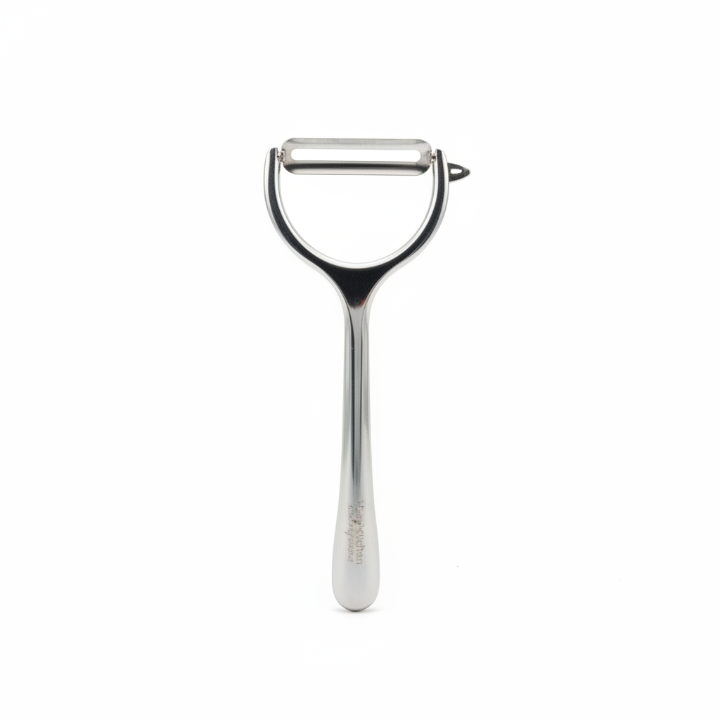 Qërues metalik në formë Y për përdorim në kuzhinë, ideal për qëruar patate dhe perime të ndryshme me lehtësi dhe kontroll.
