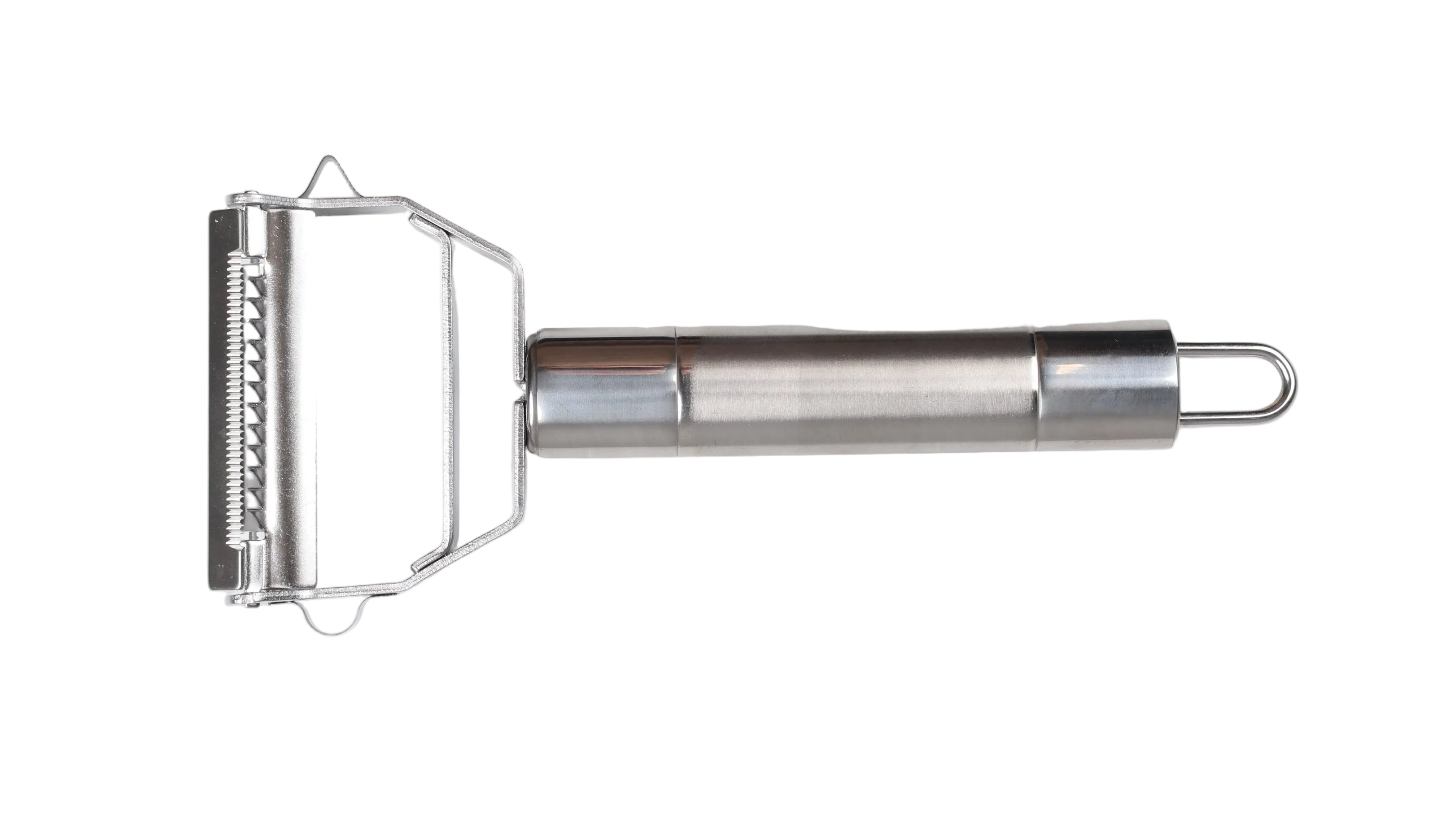Qëruese elegante dhe shumë rezistente prej çeliku inox, ideale për përdorim intensiv në kuzhinë. Tehu i mprehtë siguron qërim të shpejtë, të saktë dhe pa humbje të produktit, ndërsa doreza metalike ofron qëndrueshmëri dhe jetëgjatësi maksimale.