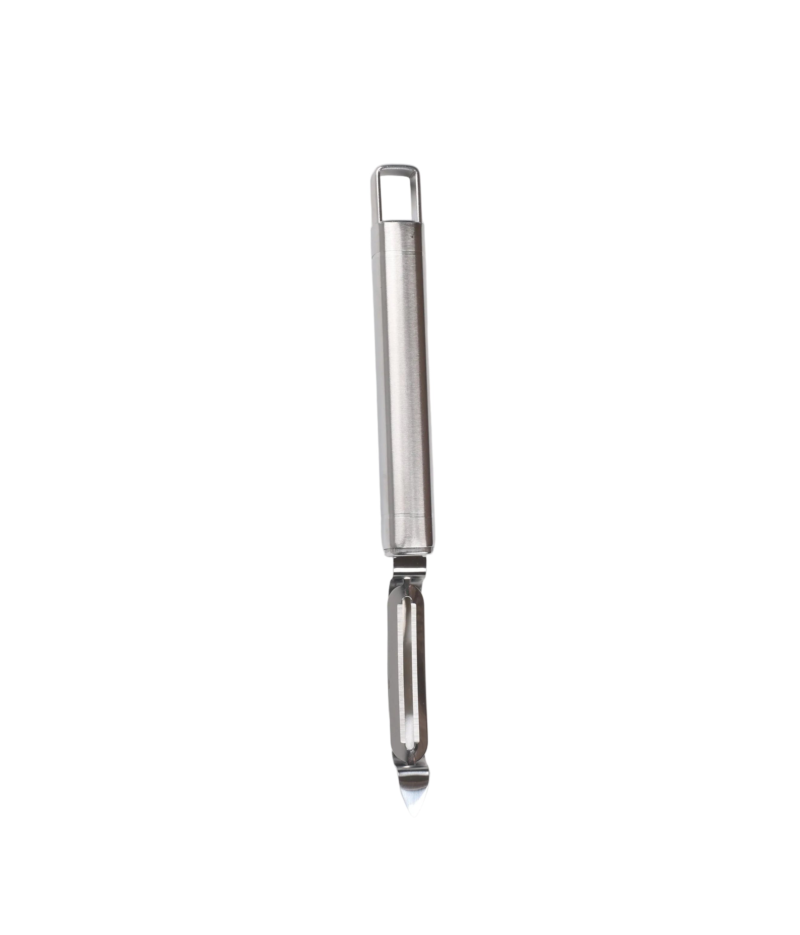 Qëruese elegante dhe shumë praktike prej çeliku inox, ideale për qërimin e shpejtë të perimeve dhe frutave. E pajisur me teh të dyfishtë për qërim efikas dhe me majë speciale për heqjen e njollave apo syve të patates.