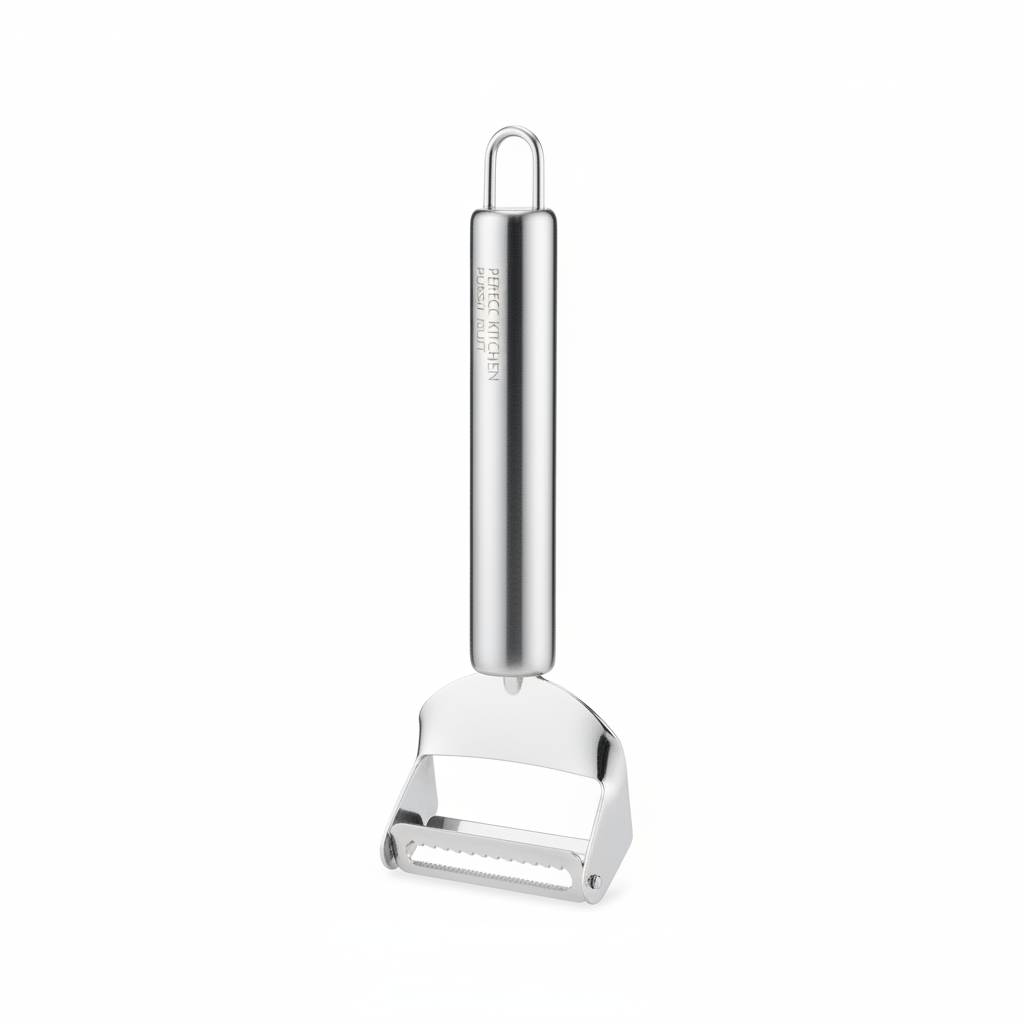 Qëruesi julienne prej çeliku inox është mjeti praktik i dorës për copëtimin dhe grirjen e perimeve direkt mbi pjatë ose në enë gatimi.