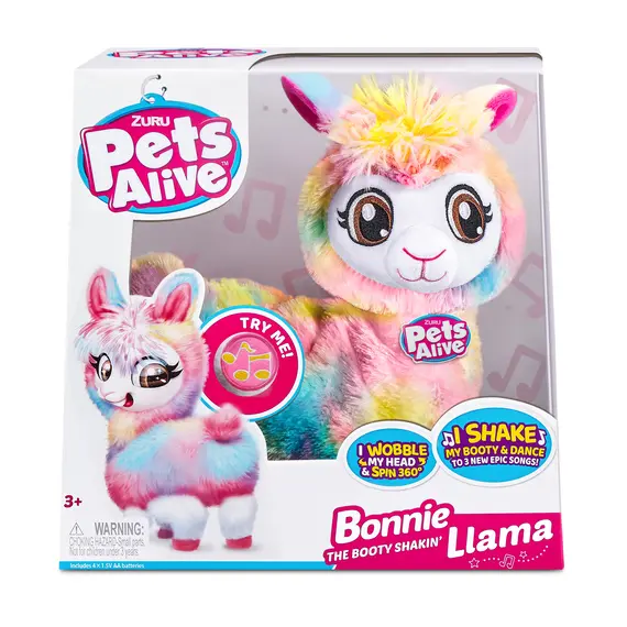 - Përfshin: 1 x Pets Alive Bonnie the Booty Shakin' Llama Electronic Pet nga Zuru me 3 x Këngë Epike