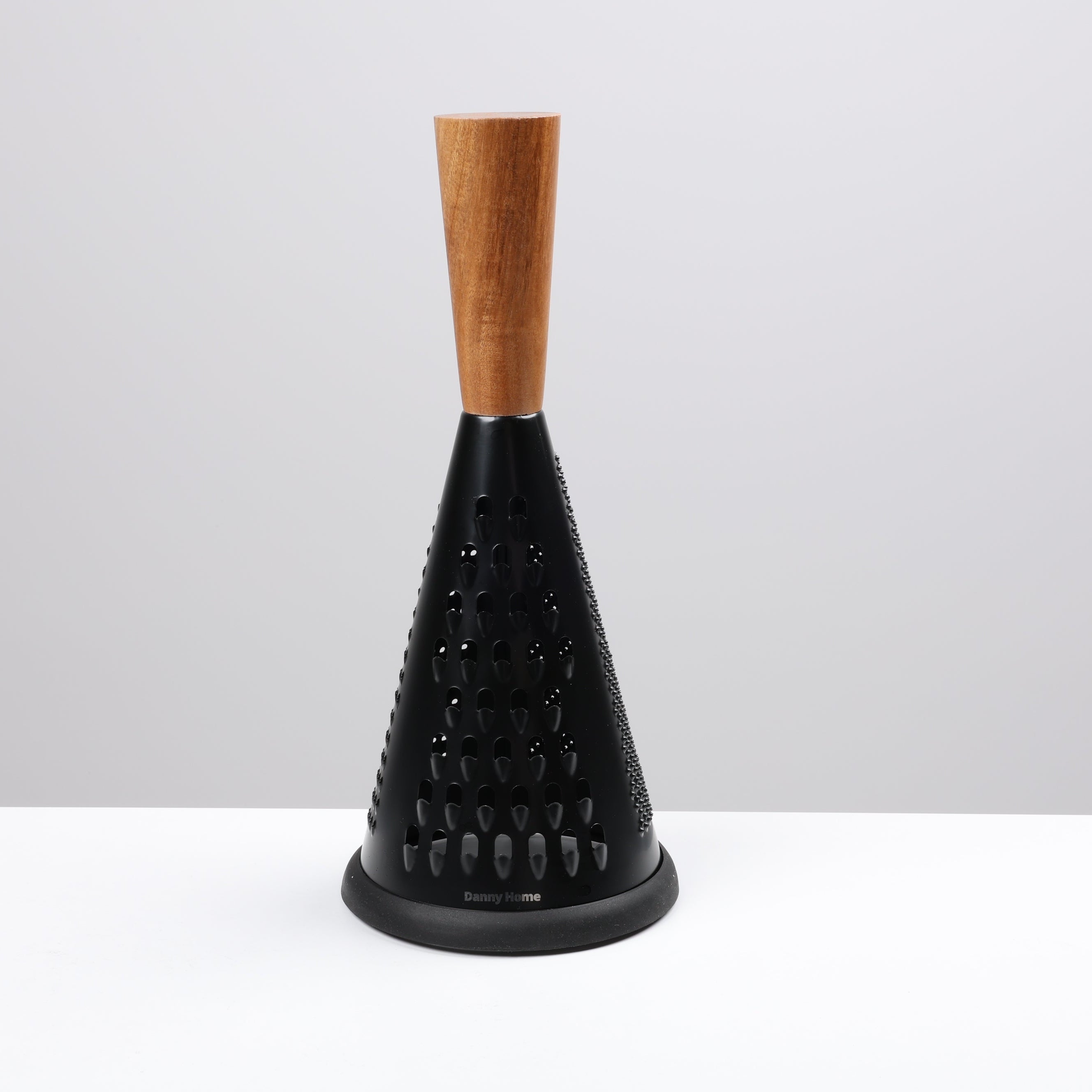 Rende elegante dhe funksionale për kuzhinë, ideale për grirjen e djathit, çokollatës, perimeve dhe frutave të forta. Dizajni konik lejon grirje të shpejtë dhe të njëtrajtshme, ndërsa doreza prej druri ofron kapje komode dhe stil natyral.