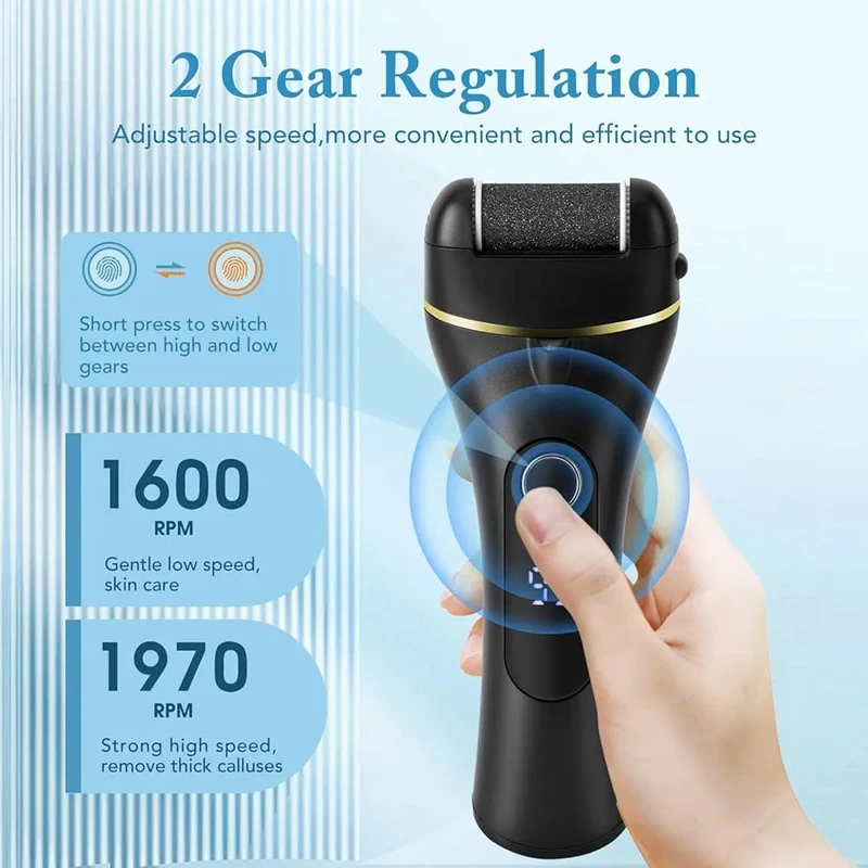Falë dy niveleve të shpejtësisë, mund të zgjidhni intensitetin e duhur sipas nevojave tuaja – nga kujdesi i butë deri te trajtimi më intensiv i kallove. Pajisja funksionon me bateri të integruar të rikarikueshme 1200 mAh, duke ofruar përdorim pa kabllo dhe komoditet maksimal.