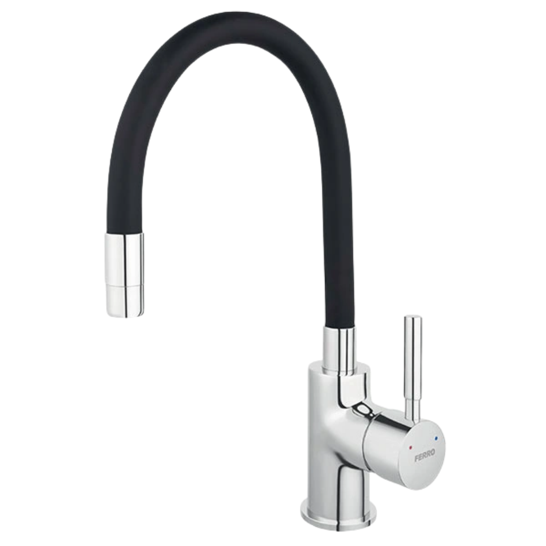 Rubinet për lavapjatë nga seria Zumba, në ngjyrë të zezë, me dizajn modern dhe elegant që përshtatet perfekt në kuzhina bashkëkohore. Ofron funksionalitet praktik dhe instalim standard.