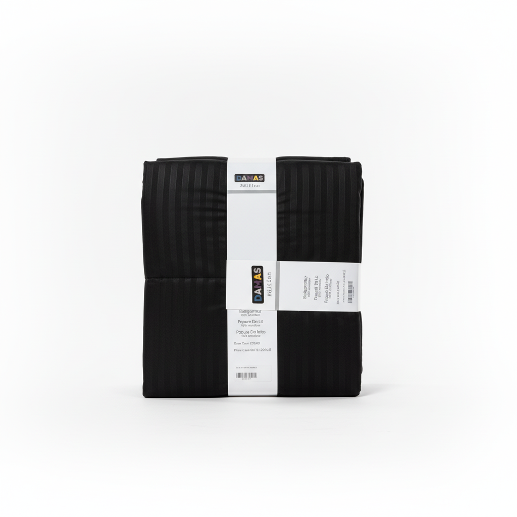 Komplet çarçafësh DAMAS Edition prej 100% mikrofibër me ngjyrë të zezë të errët, ideal për një pamje moderne në dhomën e gjumit. Seti përfshin mbulesë jorgani dhe jastëkësh për rehati të përditshme.