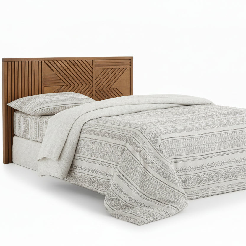 Ky set çarçafësh me motive gjeometrike në nuanca natyrale sjell një stil të ngrohtë dhe modern në dhomën tuaj të gjumit. Dizajni me vija dhe ornamente të imëta krijon një pamje elegante dhe harmonike, duke u kombinuar lehtësisht me arredime të ndryshme. Materiali i butë dhe i këndshëm në prekje ofron rehati maksimale për një gjumë të qetë çdo natë.