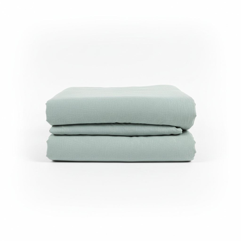 Set shtroje krevati në ngjyrë cyan të butë, i përshtatshëm për krevate dopio me përmasa 200x220 cm. Ideale për dhoma gjumi me stil modern dhe ngjyra neutrale.