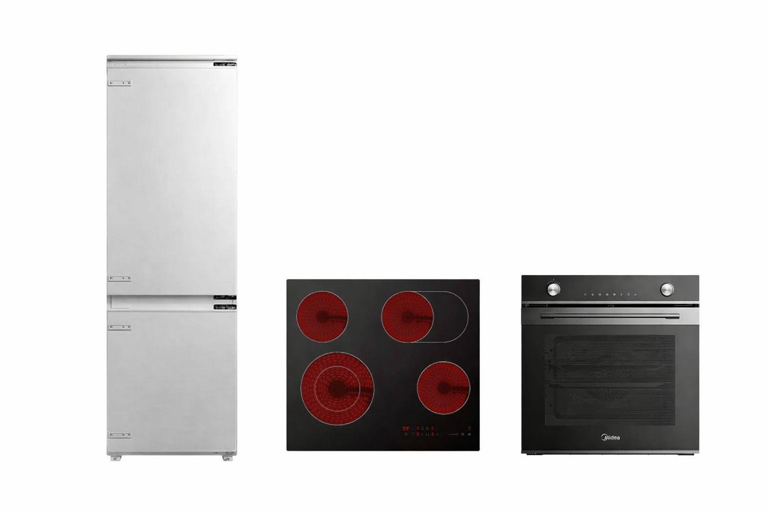 Ky set i kompletuar Midea është zgjidhja ideale për një kuzhinë moderne dhe funksionale, duke përfshirë frigorifer inkaso, furrë dhe pianurë qeramike. Kombinimi i pajisjeve siguron performancë të lartë, kursim energjie dhe përdorim të thjeshtë në përditshmëri.