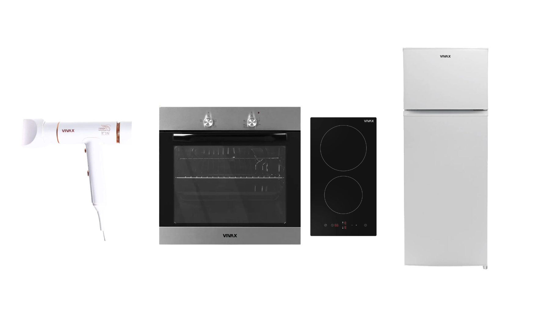 Set Furre 62L Vivax + Pianure Qeramike 2 Zona Vivax + Frigorifer 204L Vivax + Tharese Flokesh 1600W Vivax