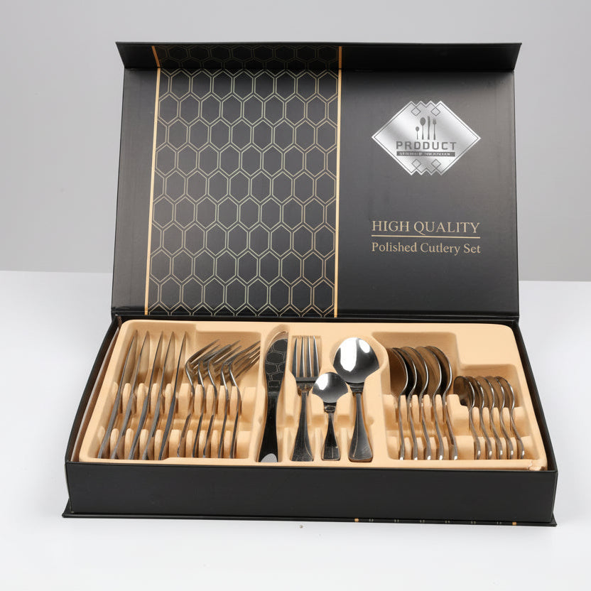 Ky set takëmesh inox sjell elegancë dhe cilësi të lartë në çdo tryezë. Me përfundim të lëmuar (polished finish) dhe dizajn modern, seti është ideal si për përdorim të përditshëm ashtu edhe për raste speciale.