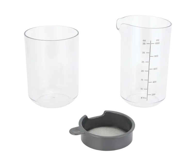 Slow juicer për përgatitje lëngjesh nga fruta dhe perime me ndarje automatike të tulit.