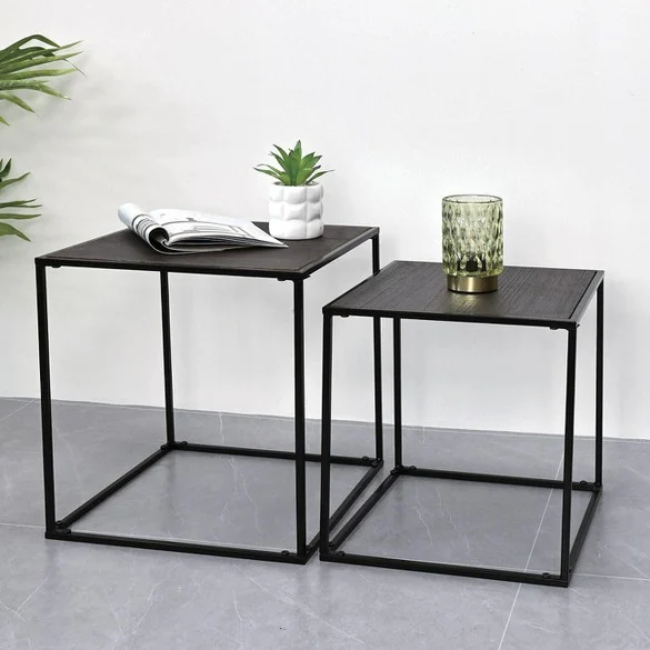Set tavolinë anësore me kornizë metalike, sipërfaqe 37x37x40cm & 33x33x35cm - 2 copë