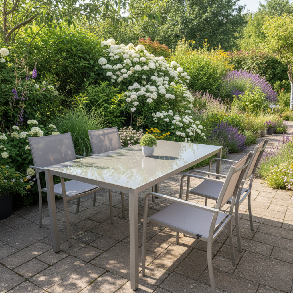 Sill elegancë dhe rehati në ambientin tënd të jashtëm me këtë set tavoline kopshti modern. Me një dizajn minimalist dhe linja të pastra.