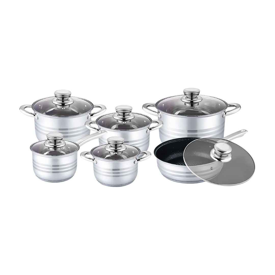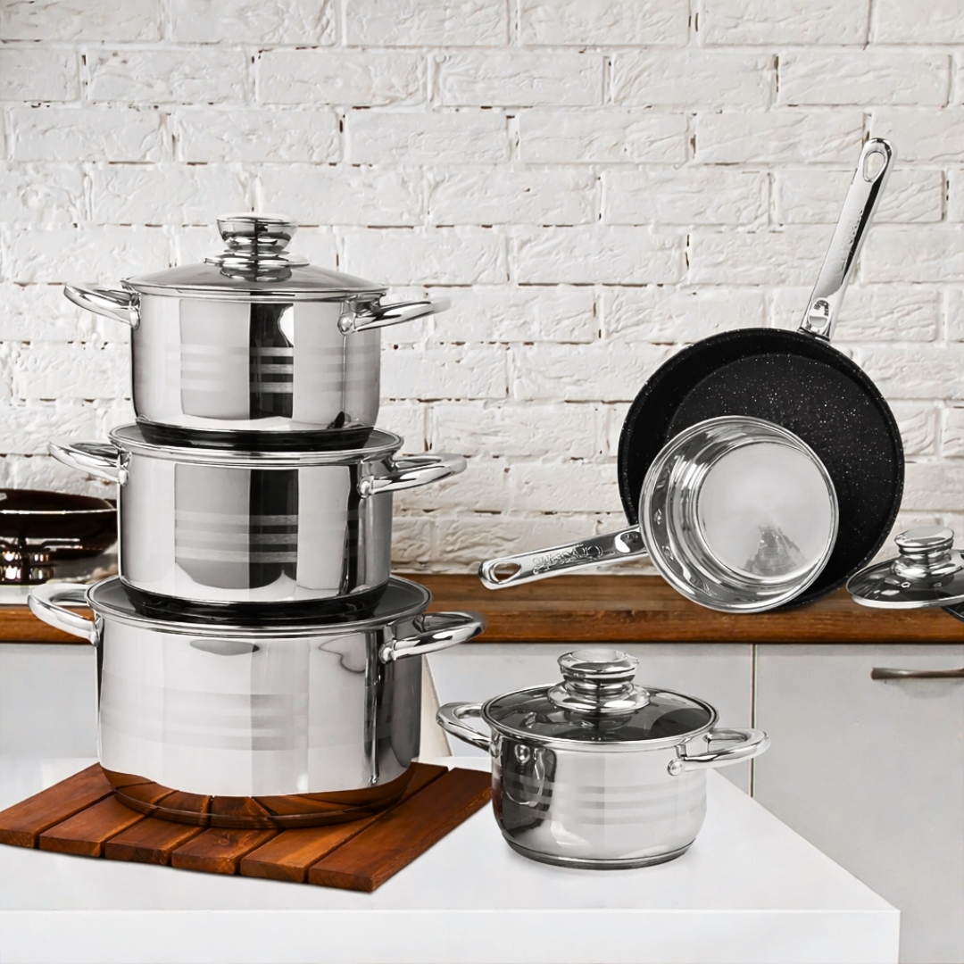 Me këtë set enësh gatimi prej 6 copë ju keni tenxheren e duhur për çdo sfidë gatimi. Set Tenxheresh Kaisa Villa përbëhet nga 4 tenxhere të madhësive të ndryshme: 16, 18, 20 dhe 24 cm; një tigan salce dhe një tigan të cekët për të përmbushur çdo nevojë tuajën në kuzhinë, të gatuani për 2 persona, 4 ose më shumë. Tenxheret janë bërë nga çelik inox i cilësisë së lartë për t’i rezistuar kohës, janë të pajisura me një bazë me 5 shtresa që siguron një transferim të barabartë të nxehtësisë, dhe përshtatshmëri me të gjitha pianurat e gatimit, përfshirë dhe ato me induksionin. Tigani i cekët 24 cm me kapak është i veshur me një shtresë jongjitëse për t'jua bërë gatimin më të lehtë në çdo kohë.