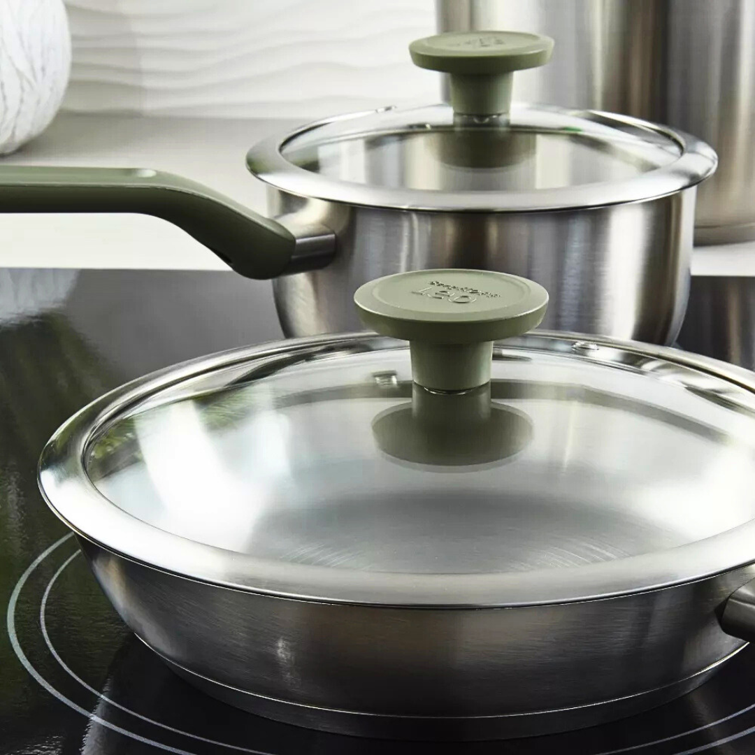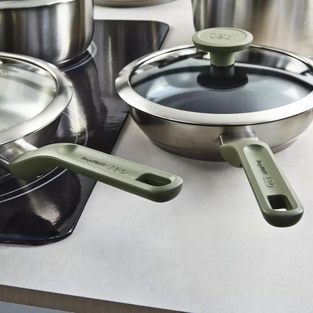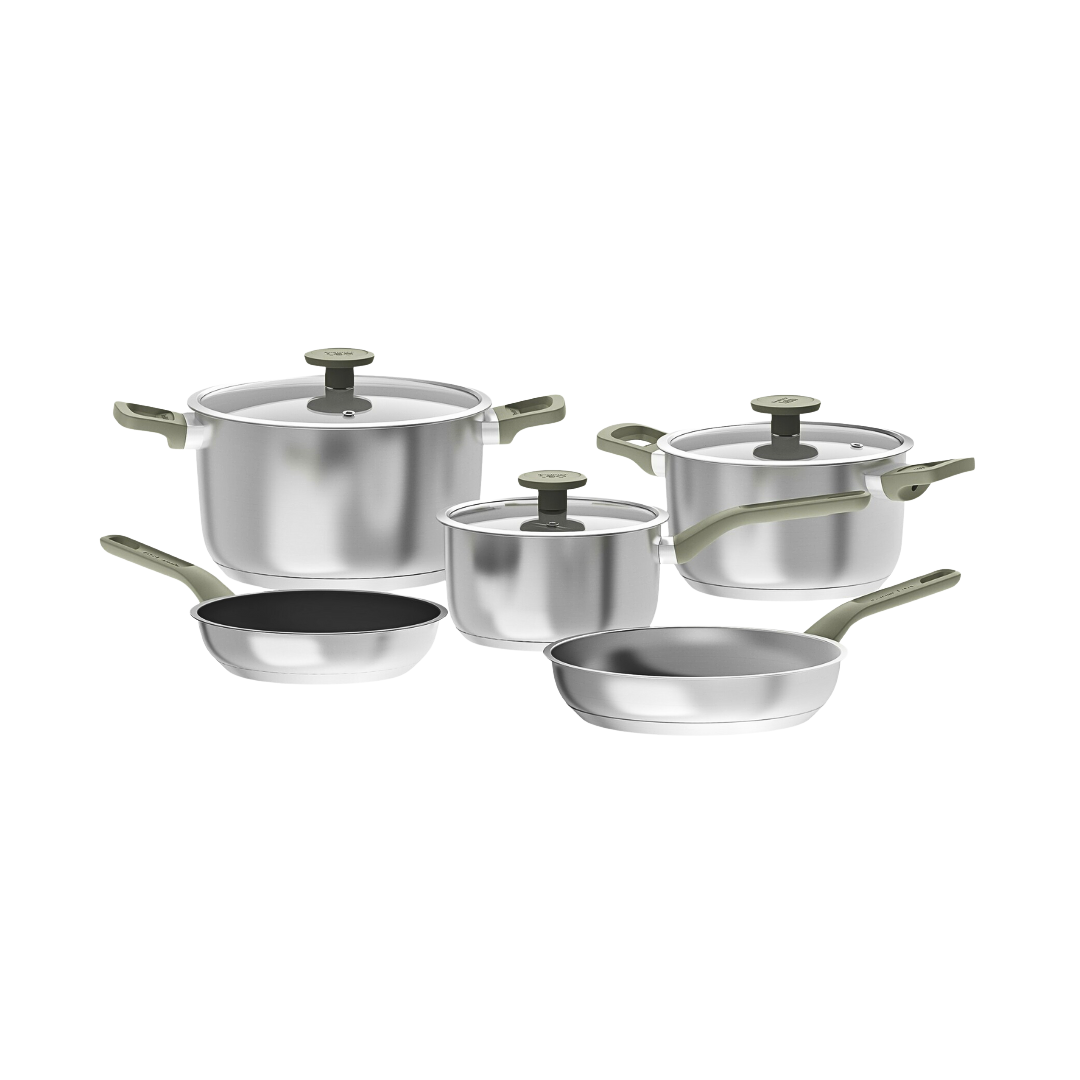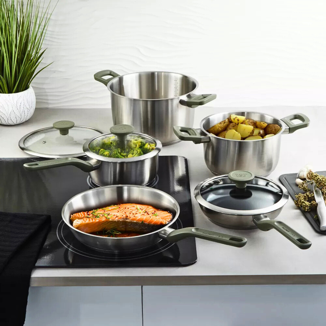Çfarëdo që të jeni duke gatuar, Set Tenxhere Bolt është gjithmonë gati për t'ju dhënë një dorë! Prodhuar nga marka BergHoff prej çelik inoksi i cilësisë së lartë, material i cili siguron shpërndarje të shpejtë dhe të barabartë të nxehtësisë në çdo lloj sobe, duke përfshirë dhe ato me induksion. E përshtatshme edhe për gatim në furrë deri në 180°C pa kapakun e qelqit. Ka një shtresë jongjitëse cilësore, në mënyrë që të gatuani me pak yndyrë. Një nga karakteristikat e enëve të kuzhinës Bolt, është doreza e kapakut e cila shërben edhe si mbajtëse për lugën e gatimit, si dhe gomina përreth kapakut e cila mundëson një mbyllje më të mirë, për të mos humbur aromat dhe nxehtësinë e ushqimit.