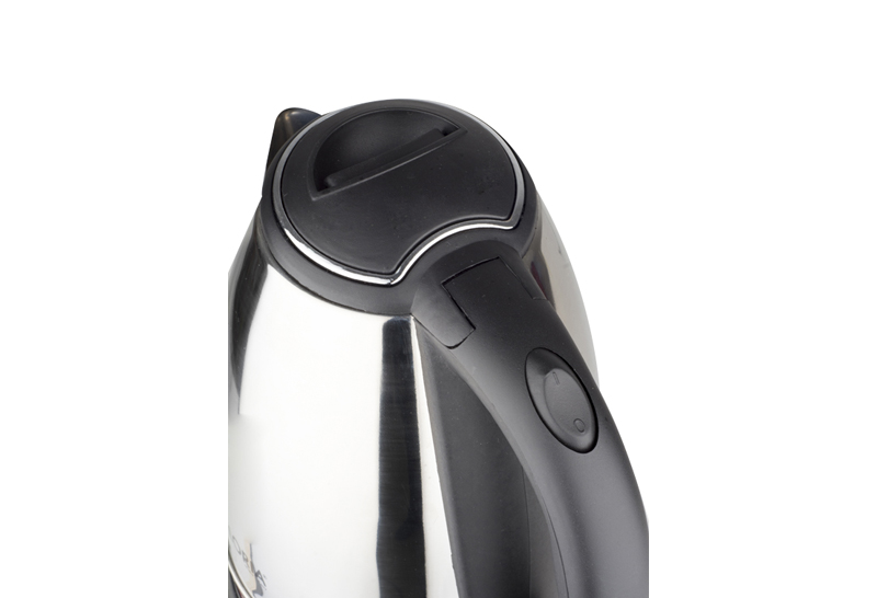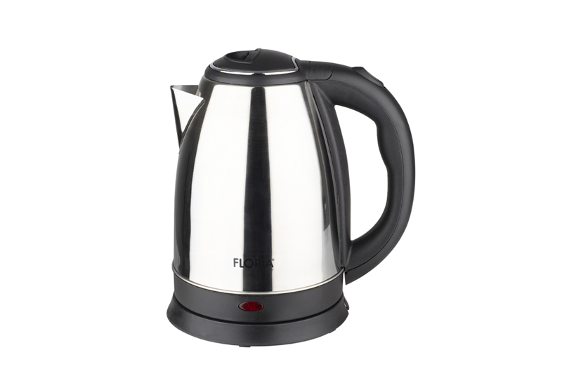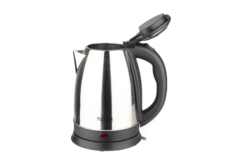 Ibrik inox 1500W – kapacitet 1.8L, ngrohës i fshehur dhe sistem sigurie kundër mbinxehjes.