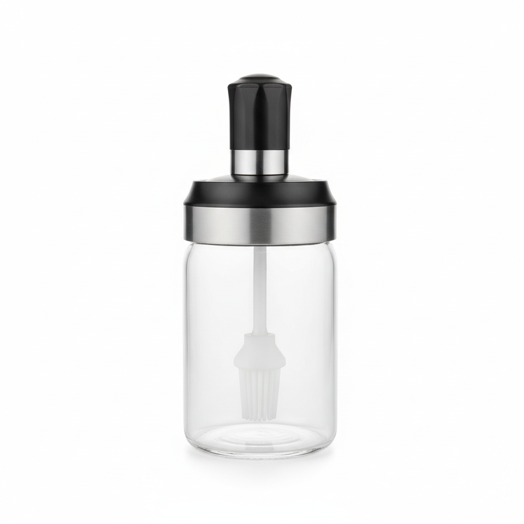 Ideale për përgatitjen e vakteve të përditshme, kjo shishe praktike me kapacitet 200 ml lejon shpërndarje të kontrolluar të vajit direkt mbi tigan, mish, perime apo brumëra. Trupi prej qelqi të tejdukshëm e bën të lehtë monitorimin e sasisë, ndërsa furça silikoni në brendësi siguron lyerje të njëtrajtshme pa shpërdorim.