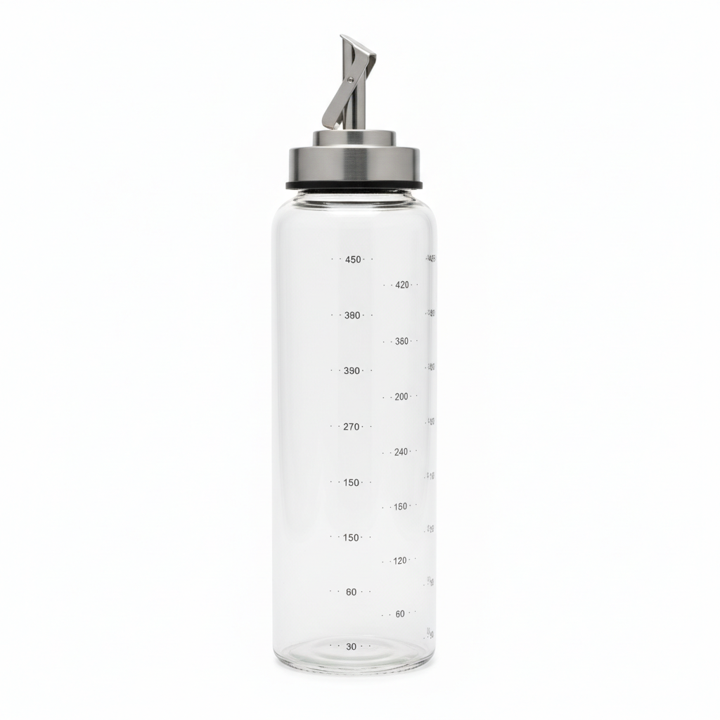 Shishja praktike prej xhami me kapacitet 500 ml është zgjidhja ideale për ruajtjen dhe hedhjen e vajit në mënyrë të kontrolluar dhe higjienike. Gravat e qarta matëse në trupin cilindrik të shishes ju ndihmojnë të shihni sasinë e saktë që përdorni në receta. Gryka dhe kapaku metalik me ngjyrë silver ofrojnë një pamje moderne dhe të pastër, të përshtatshme për çdo kuzhinë.