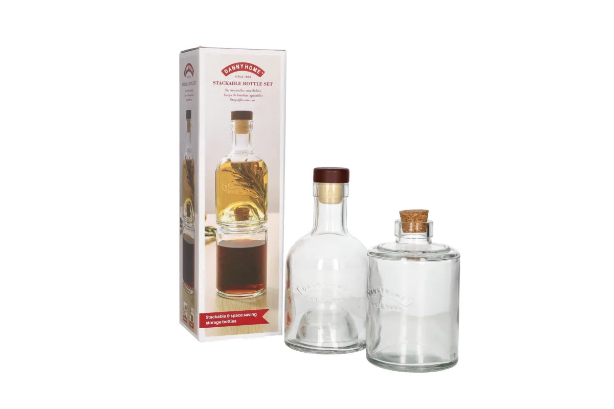 Shishe për vaj dhe salca me dizajn të grumbullueshëm, që kursejnë hapësirë dhe ndihmojnë në organizimin e kuzhinës.