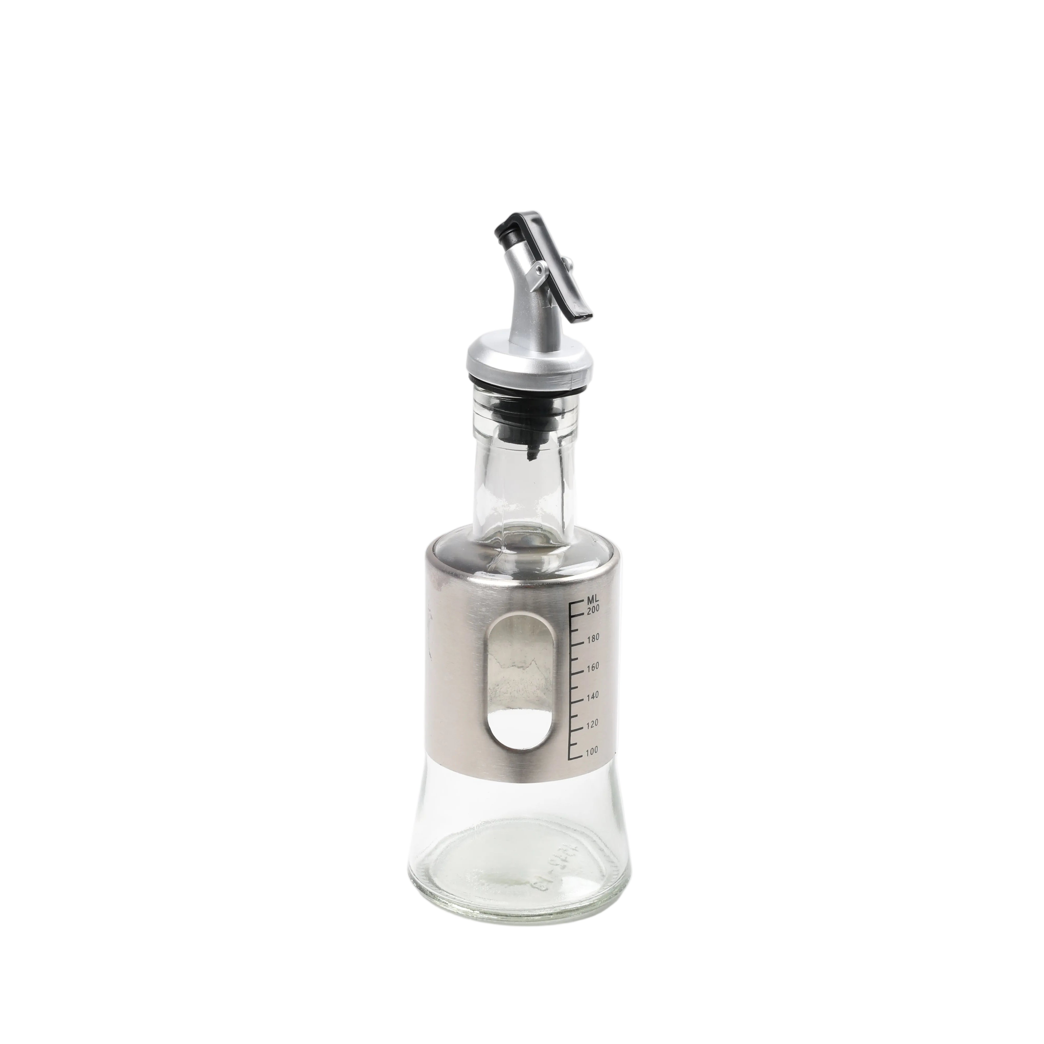 Shishe praktike dhe elegante për ruajtjen dhe dozimin e vajit, uthullës ose lëngjeve të tjera. E pajisur me kapak inox me mekanizëm anti-pikë, siguron derdhje të kontrolluar dhe të pastër pa rrjedhje.