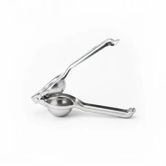 Shtrydhësja metalike për agrume me dorezë manuale ofron një mënyrë të thjeshtë dhe të shpejtë për të nxjerrë lëng nga limonët dhe agrumet e vogla direkt mbi gotë ose pjatë.