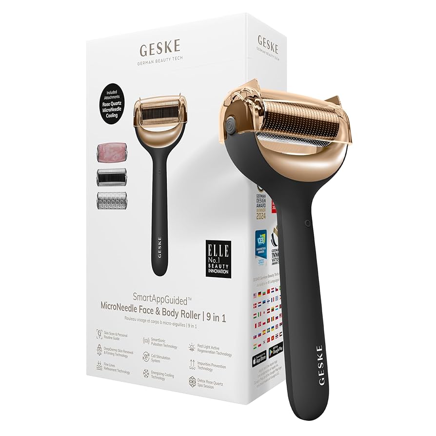 SmartAppGuided™ MicroNeedle Face & Body Roller | 9 in 1 (Gray) është një pajisje inovative bukurie që kombinon microneedling, teknologjinë e pulsimeve sonike dhe fuqi rigjeneruese për të sjellë një përvojë të plotë spa në shtëpinë tuaj. Me tre koka të ndërrueshme – Microneedle, Cooling dhe Rose Quartz, ky roller stimulon qelizat e lëkurës, nxit rigjenerimin e indeve dhe ndihmon në parandalimin e papastërtive, rrudhave të imta dhe shenjave të plakjes.