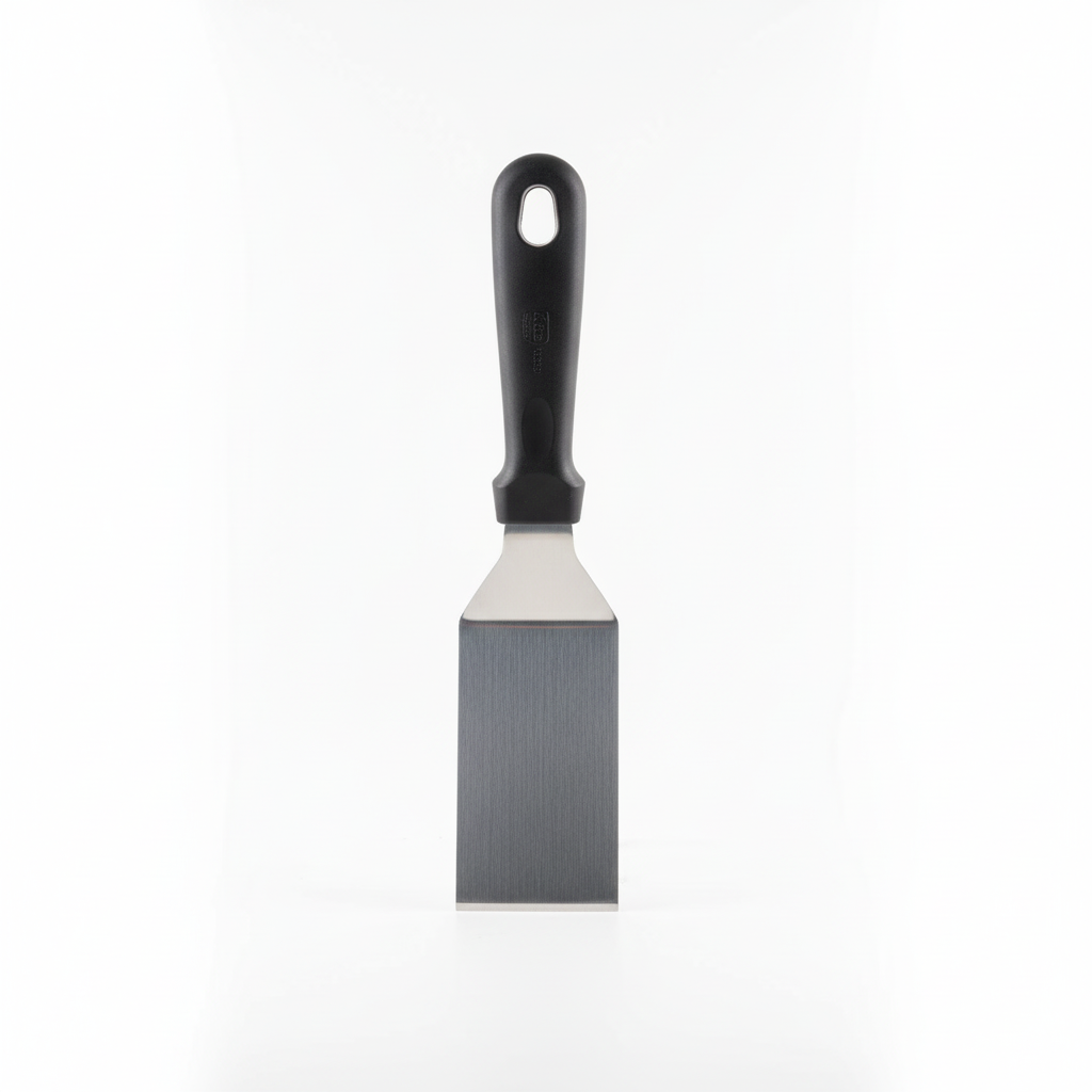 Shpata praktike e kuzhinës me teh çeliku inox dhe dorezë plastike është ideale për gërvishtje, prerje dhe përgatitje ushqimi. Dizajni i sheshtë katror e bën të përshtatshme për një sërë detyrash në gatim.