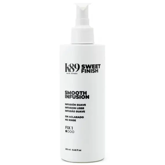 K89 Sweet Finish Smooth Infusion është një trajtim pa shpëlarje që ushqen flokët dhe lufton kaçurrelat gjatë gjithë ditës, madje edhe në kushte me lagështirë. Ideal për flokë të drejtë, kaçurrela ose me onde, ky produkt siguron një përfundim të lëmuar dhe me shkëlqim.