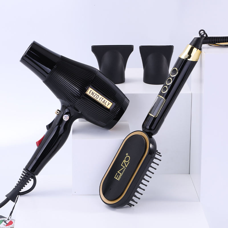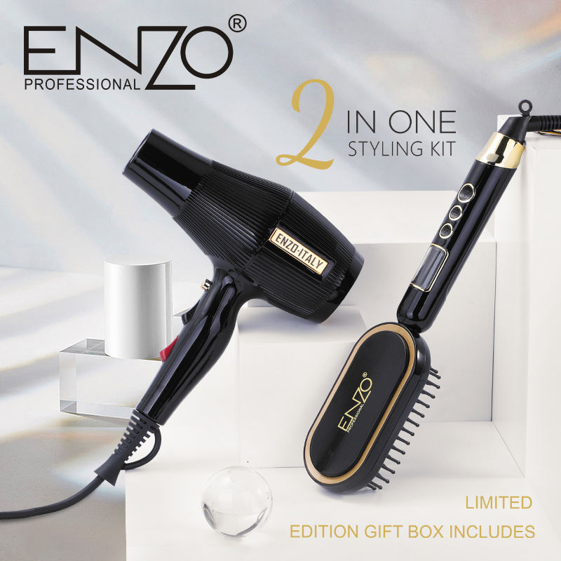 ENZO EN-6304 është një stilues profesional One Step 2-në-1, që kombinon funksionin e tharëses së flokëve dhe pjastrës për drejtim në një pajisje të vetme. I projektuar për përdorim në sallone bukurie, hotele dhe ambiente komerciale, ky model ofron tharje të shpejtë dhe drejtim efikas me një lëvizje të vetme.