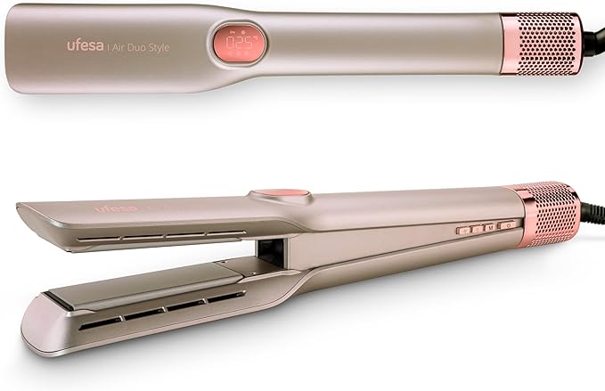 Ufesa Air Duo Style 3 në 1 është një pajisje multifunksionale për tharje dhe drejtim flokësh, e projektuar për stilim praktik dhe të kontrolluar. Motori dixhital me shpejtësi të lartë 110.000 rpm dhe sistemi Smart Airflow mundësojnë tharje dhe formësim efikas, ndërsa pllakat qeramike ekstra të gjera ndihmojnë në drejtim më të njëtrajtshëm të flokëve.