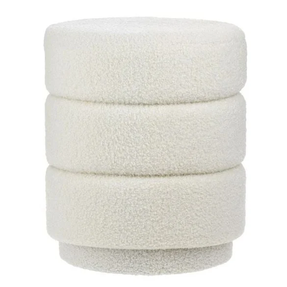 Stol dekorativ - mobilje puf në formë cilindrike dhe ngjyrë të bardhë të errët. Është e veshur me pëlhurë bouclé me kornizë druri. Është praktike, e lehtë dhe përveç karakterit të saj utilitar si ulëse, mund të përdoret edhe si dekor, duke plotësuar stilin e hapësirës. Mund të vendoset në çdo zonë të shtëpisë ose ballkon! Gjeni atë që i përshtatet stilit tuaj të dekorimit vetëm në Jumbo! Pesha maksimale 110kg Diametri x Lartësia 36x43cm